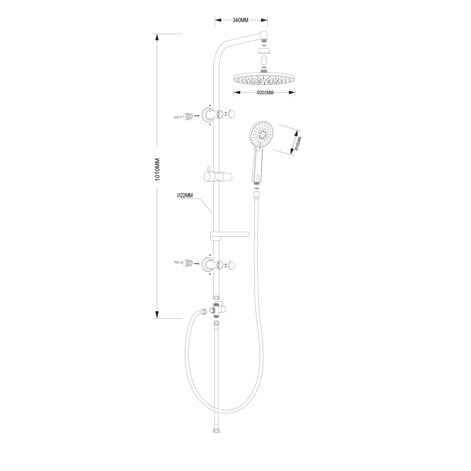 Zuhanyoszlop rúd átmérőjeÁtmérő 22 mm