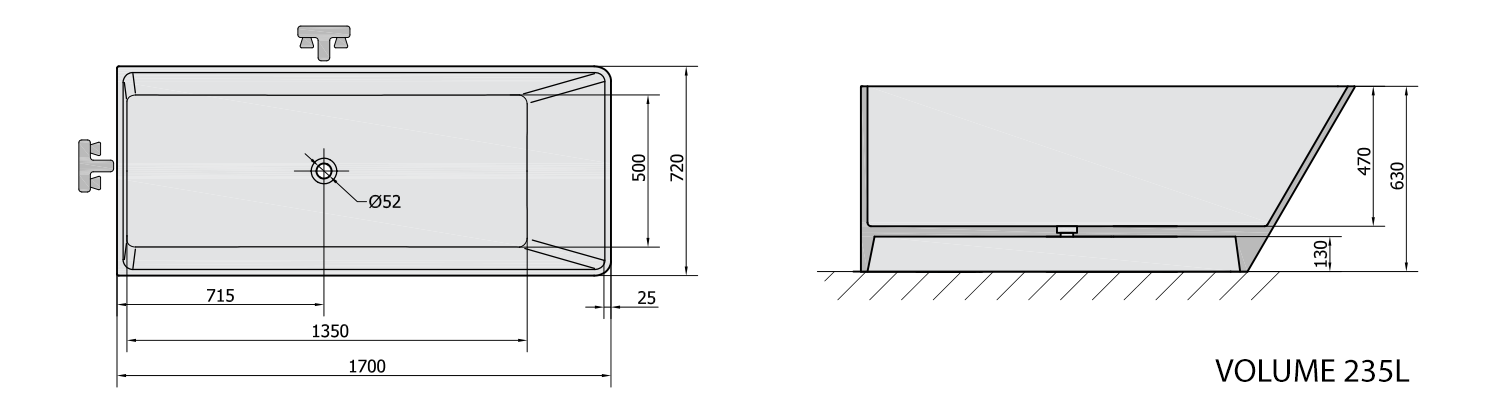 POLYSAN HERHIS öntöttmárvány szabadonálló kád, 170x72x63cm (10613)