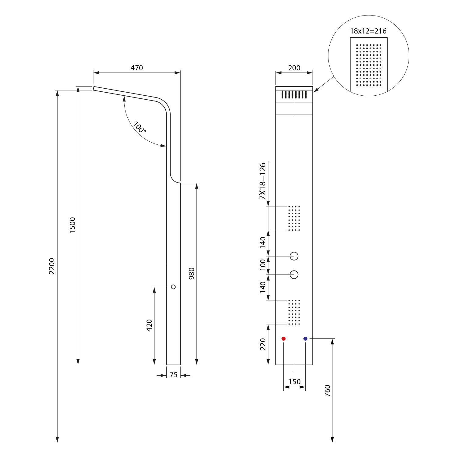 Átfolyás (3 bar): fejzuhany12 l/min