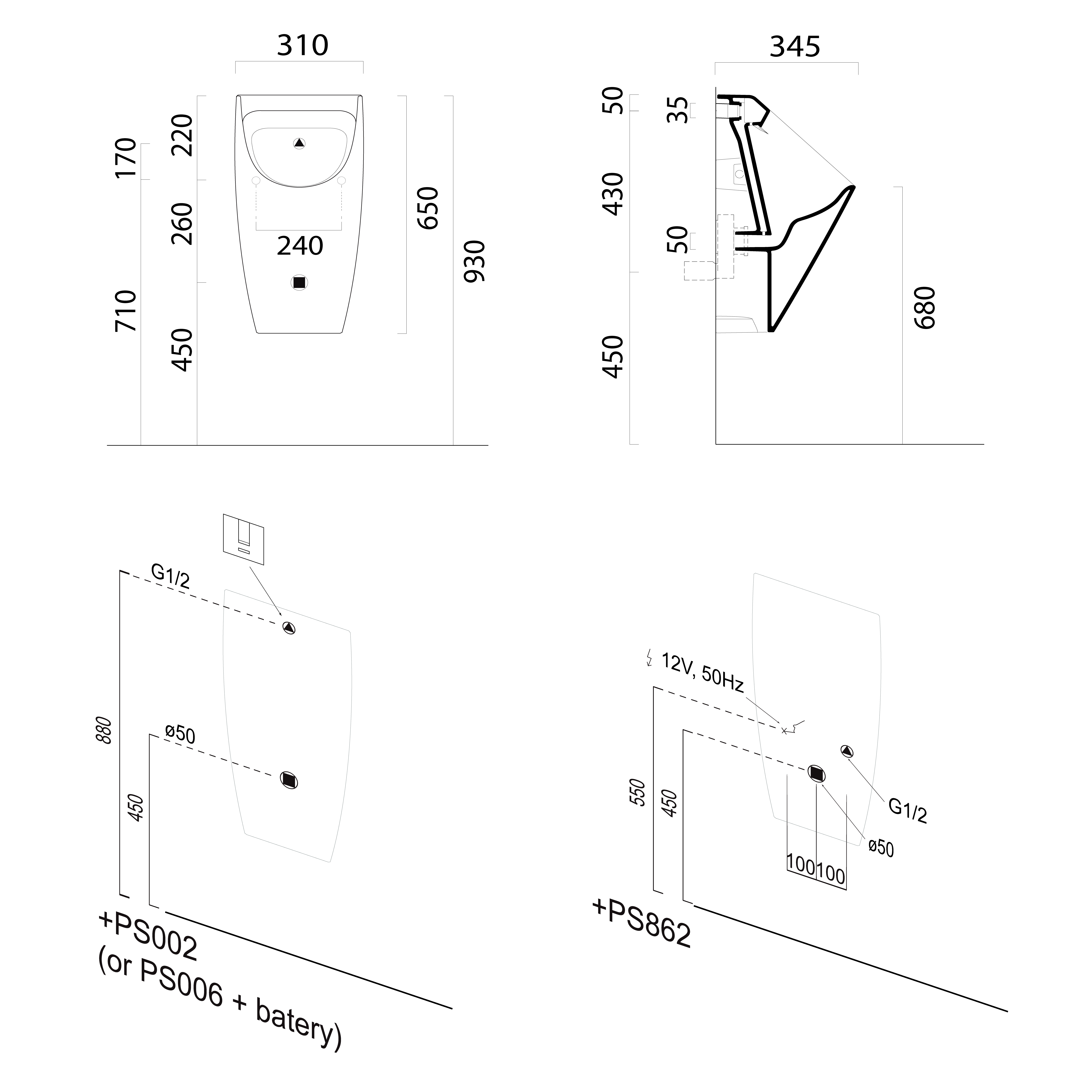 PS862 Szenzoros öblítőmechanika piszoárhoz, 6V DC