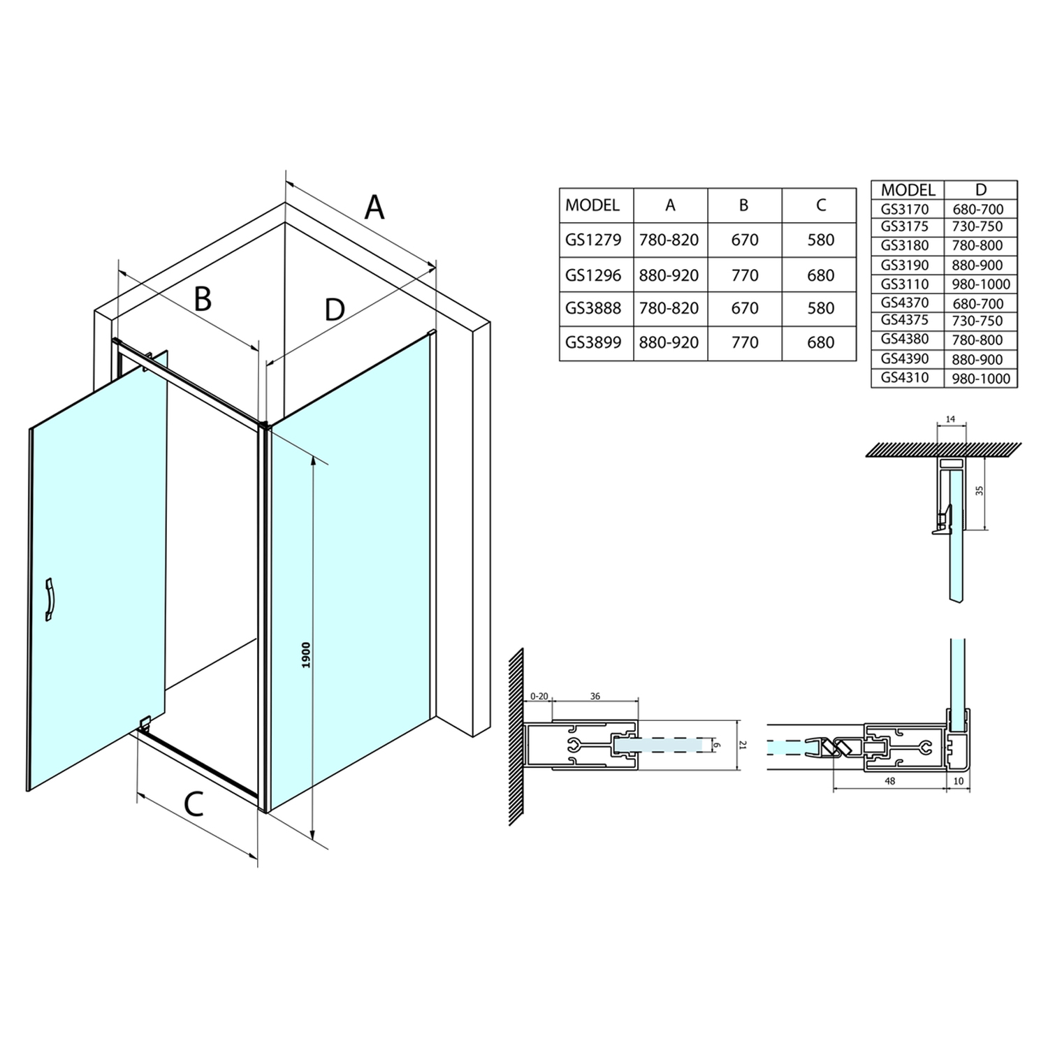 GS2190GS2180 SIGMA SIMPLY szögletes zuhanykabin 900x800mm, balos/jobbos, sarokbelépős
