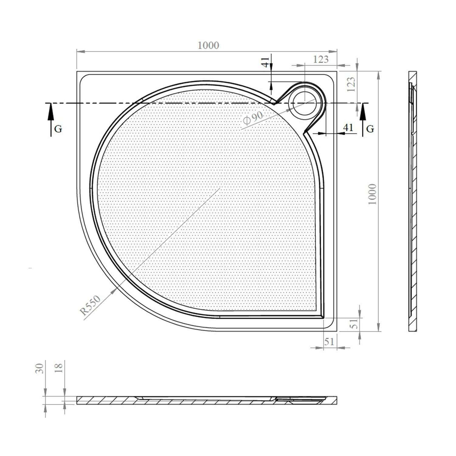 GELCO ARCA íves zuhanytálca, R550, 100x100cm (PA551)