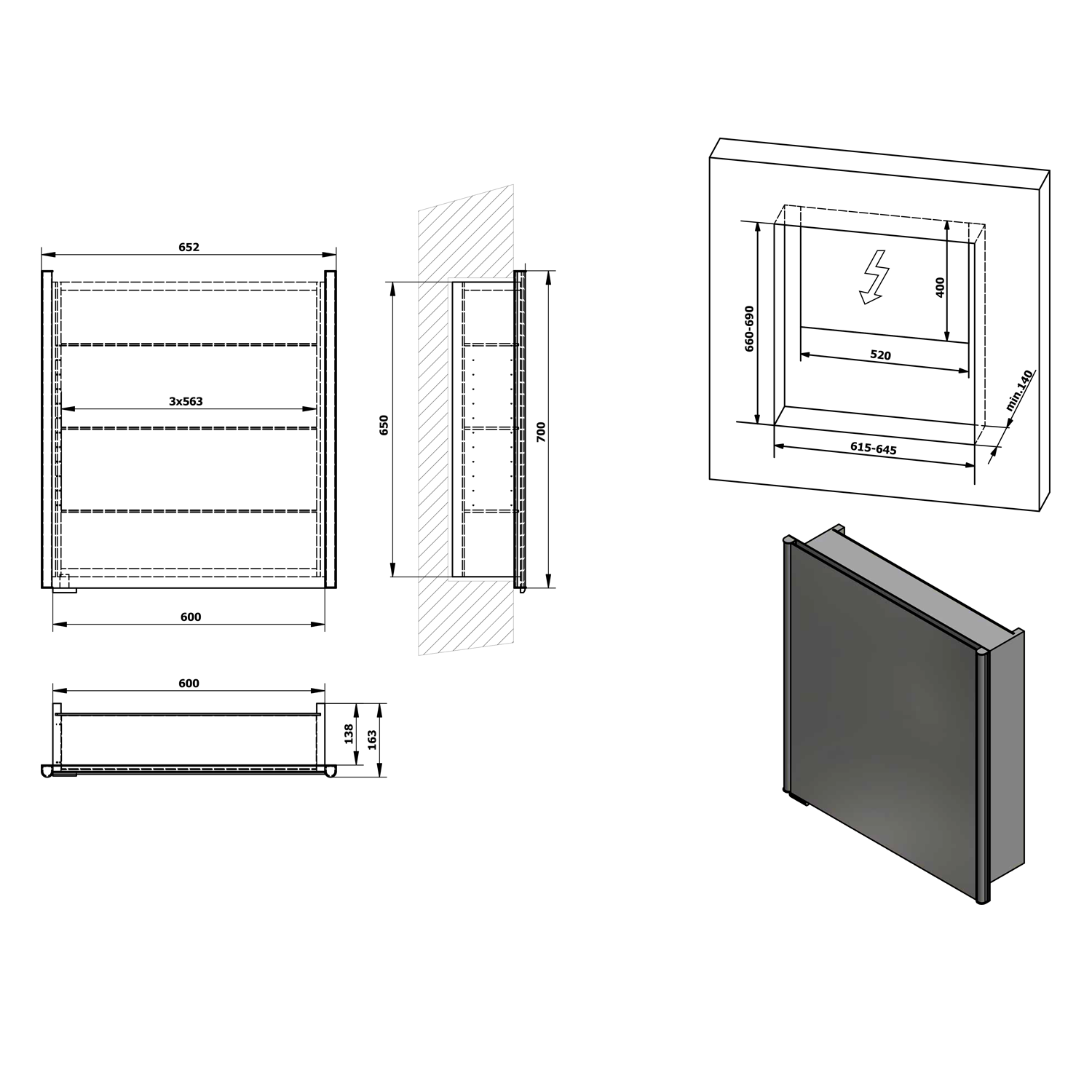 INTEGRA falba építhető tükrösszekrény LED világítással, balos/jobbos 65,2x70x16,5cm (IN065)