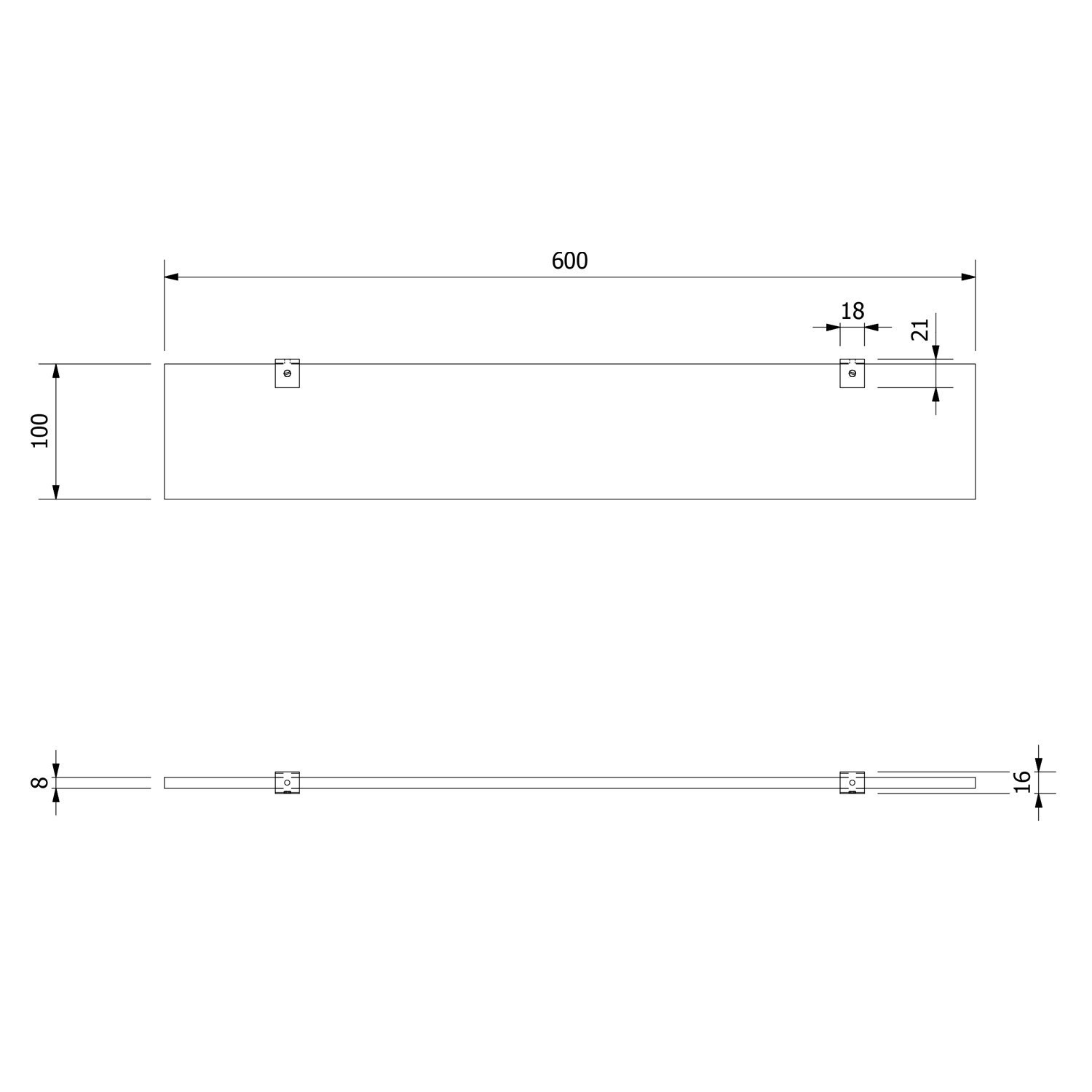 SB125 AQUALINE SAMBA üvegpolc, 60x10cm, átlátszó üveg