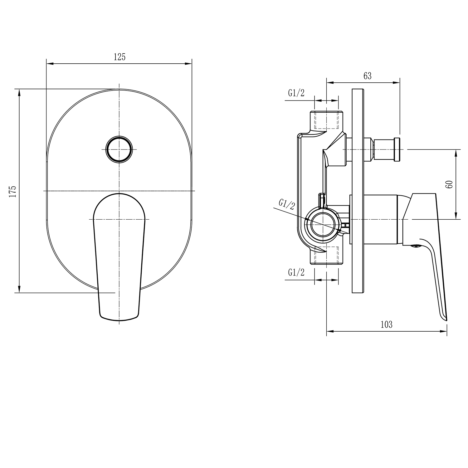 LT742B AQUALINE LOTTA falba süllyesztett zuhanycsaptelep, 2-irányú, fekete