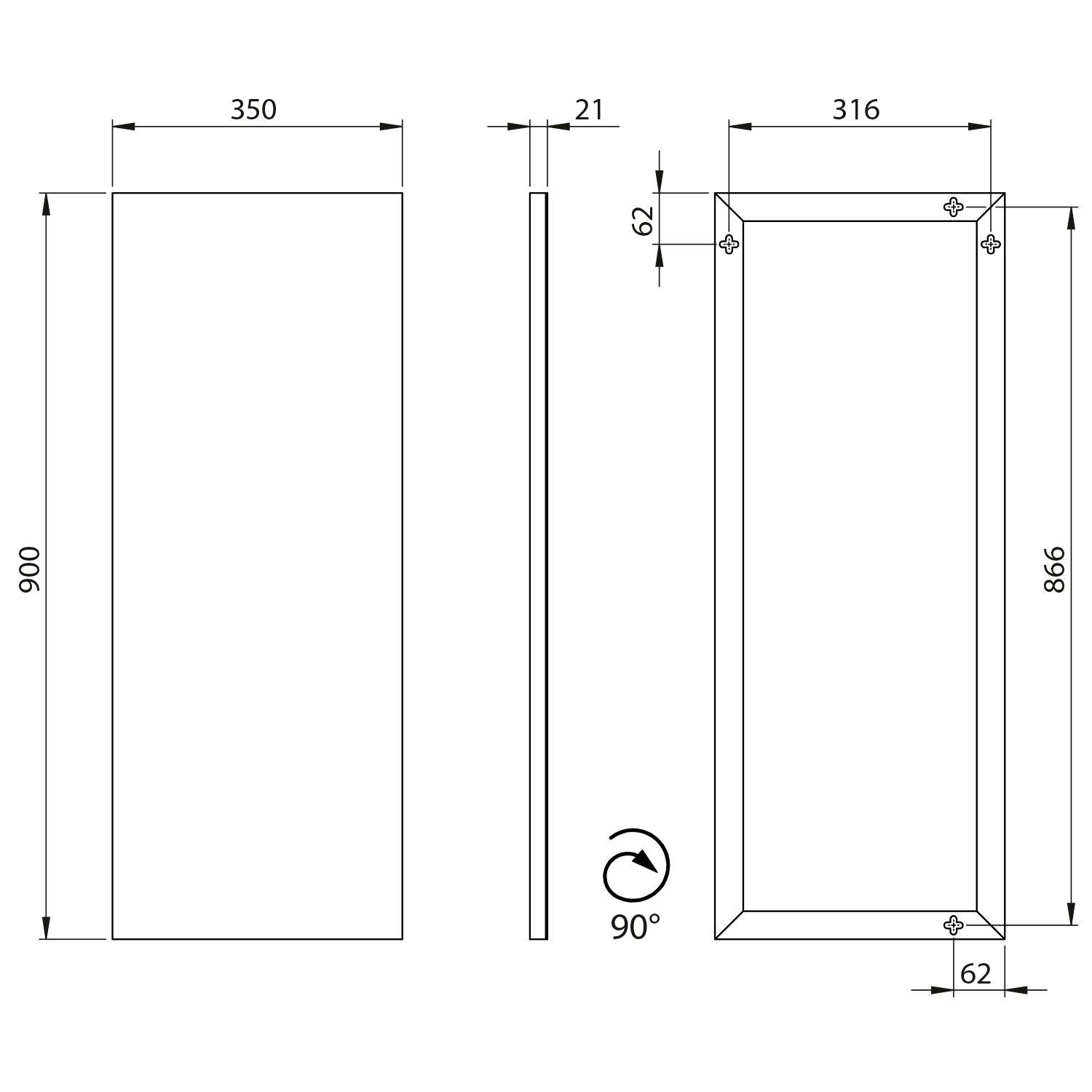 AW3590 AROWANA keretes tükör, 350x900mm, króm