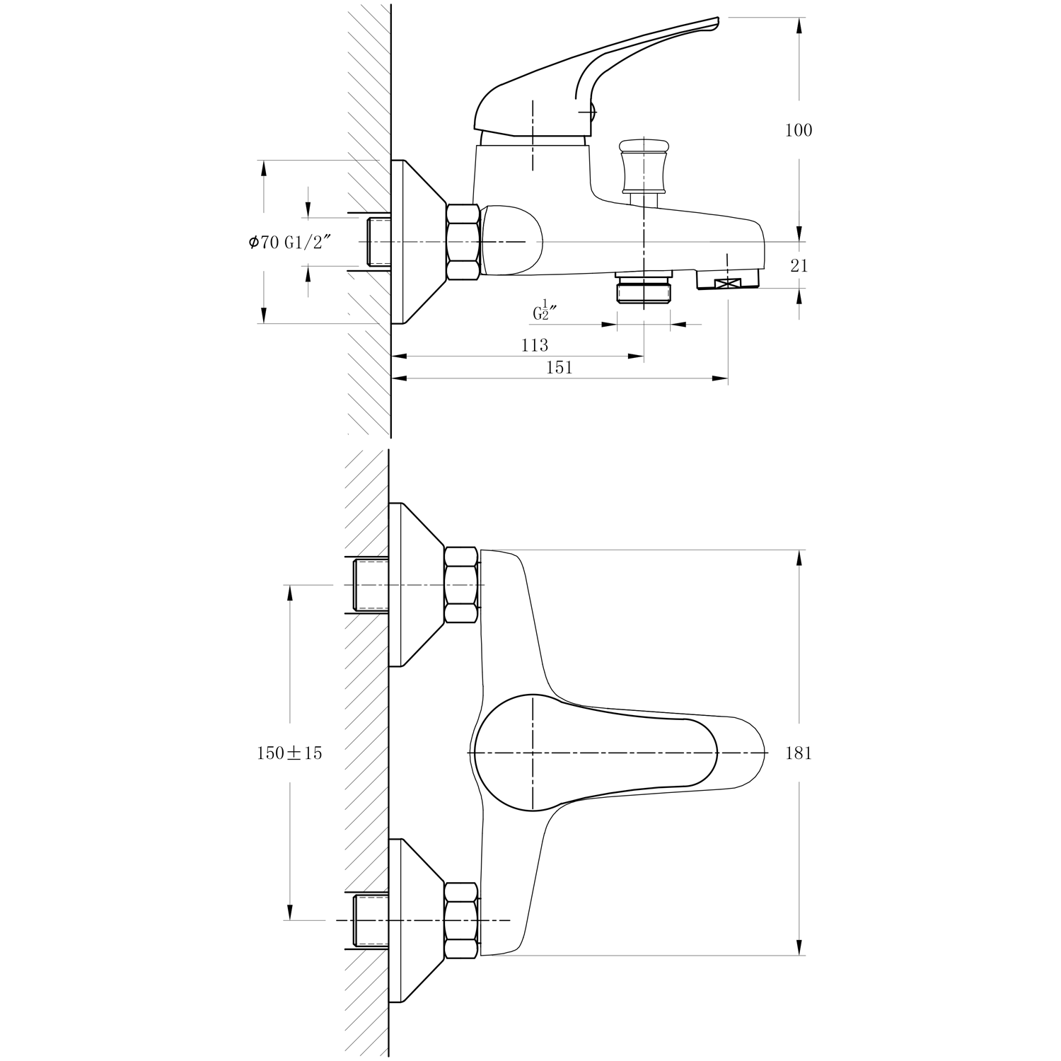 SzerelésFali 150 mm