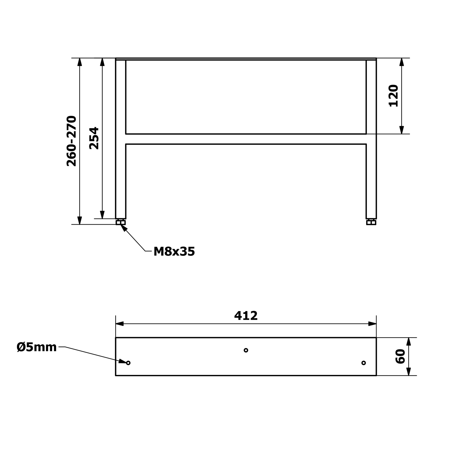 ODETTA tartó lábak, 2db/csomag, 60x260-270x412mm, matt fekete (30313)