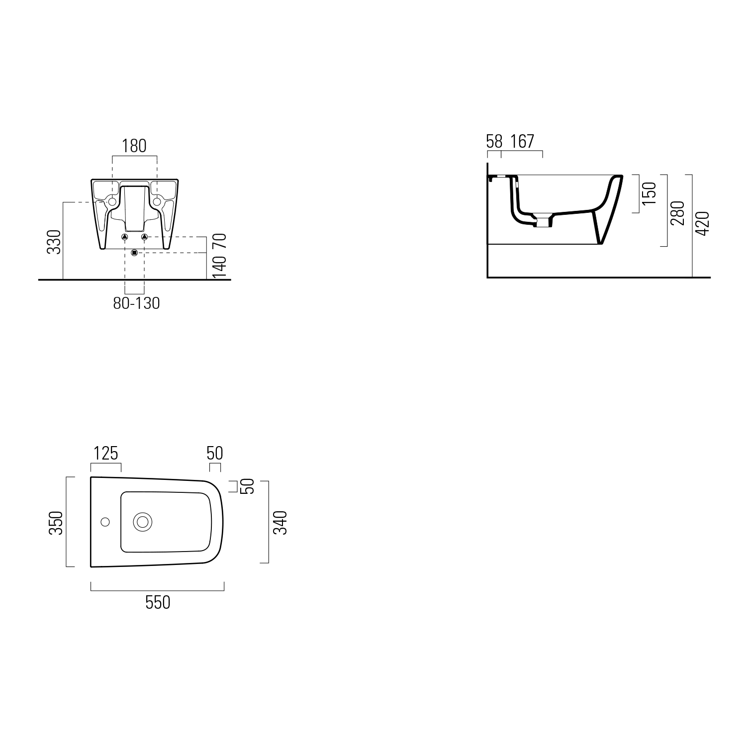 9665111 GSI NUBES fali bidé, 55x35cm, ExtraGlaze