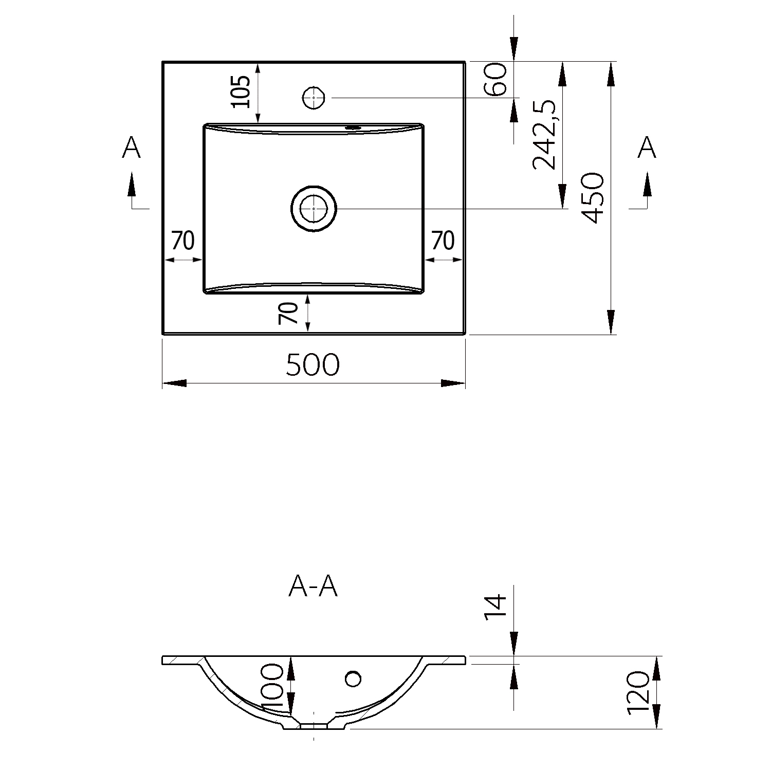 YUKON öntöttmárvány mosdó, 50x45cm (YU050)