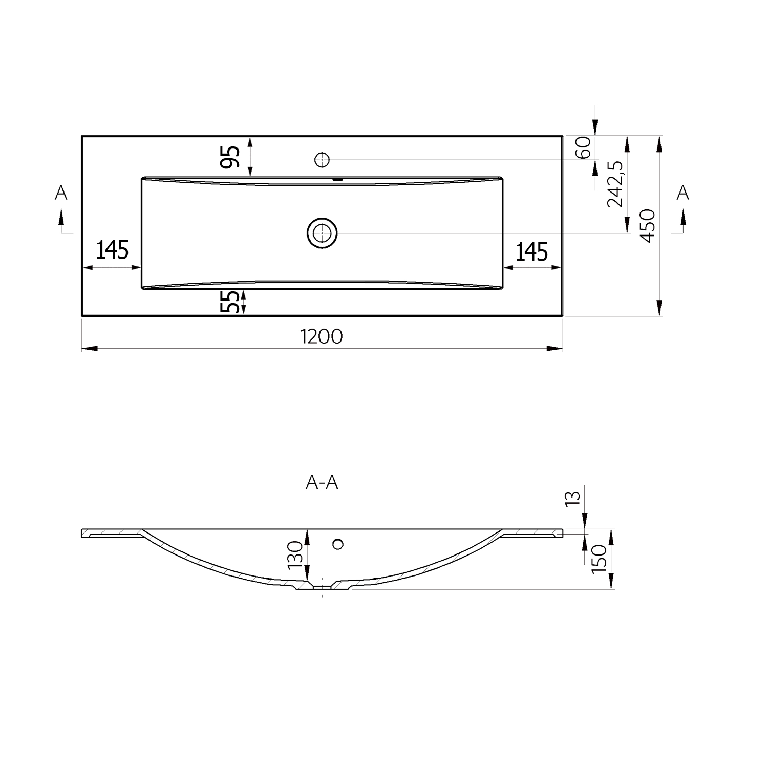 YU122 YUKON öntöttmárvány mosdó, 2 furattal, 120x45cm
