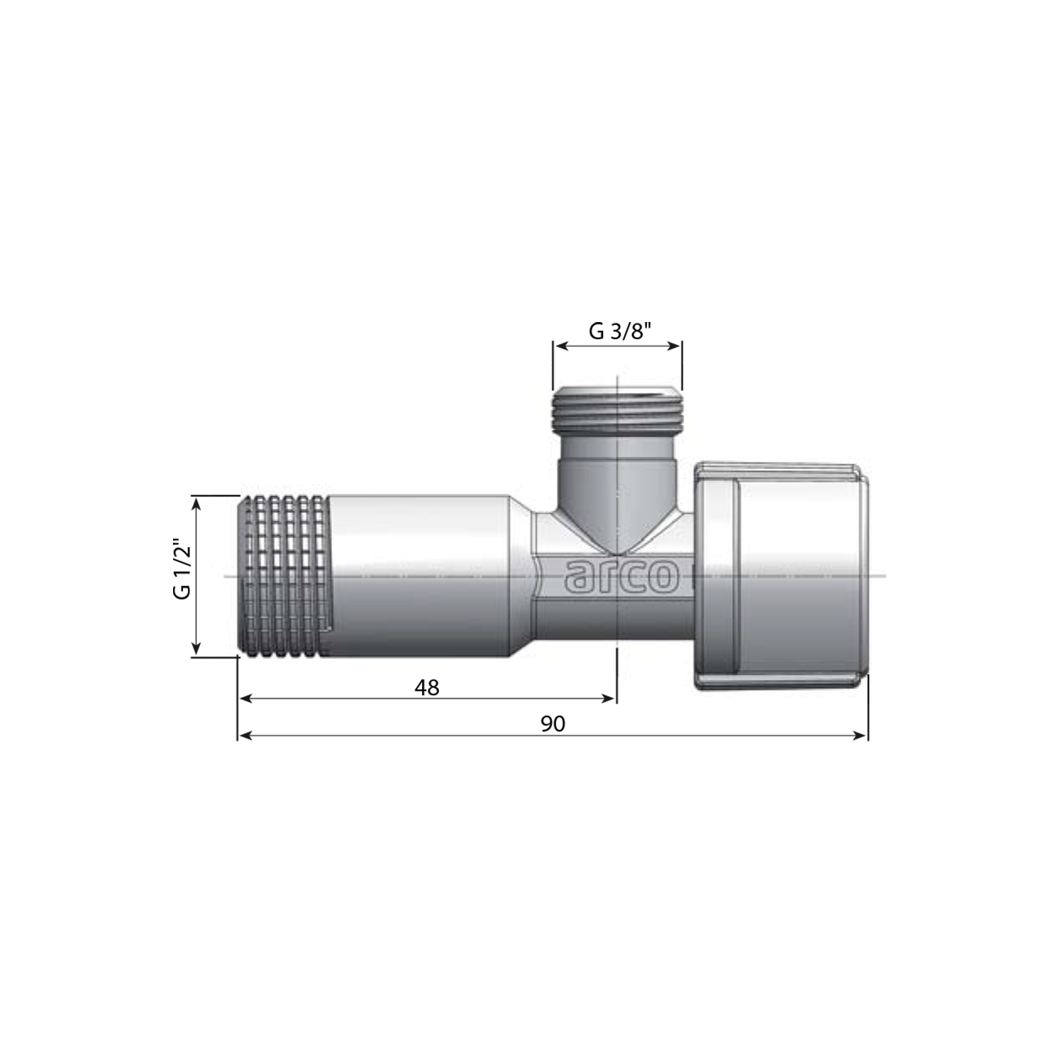 ARCO Sarokszelep ARCO 1/2" x 3/8" fém szorítóval, anya nélkül, ANTICAL, króm (NOV76MAC)