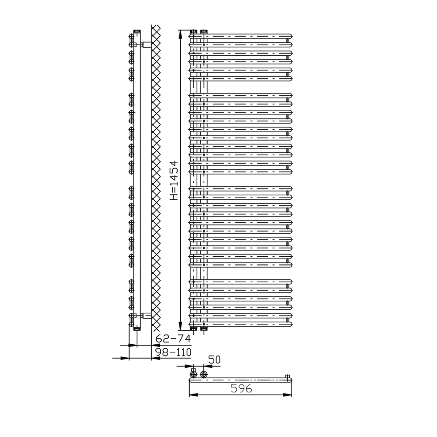 Towel rail with a 50 mm connection spacing