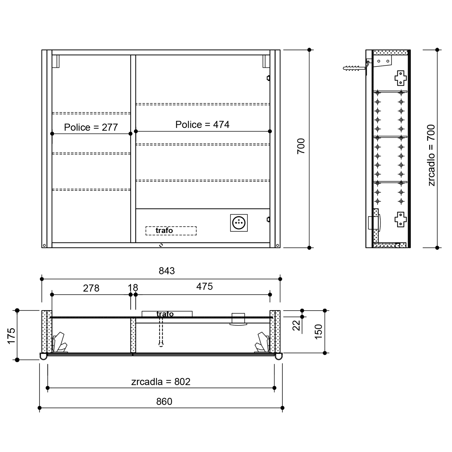 SZ700 Szenzoros érzékelő készlet tükrös szekrényekhez