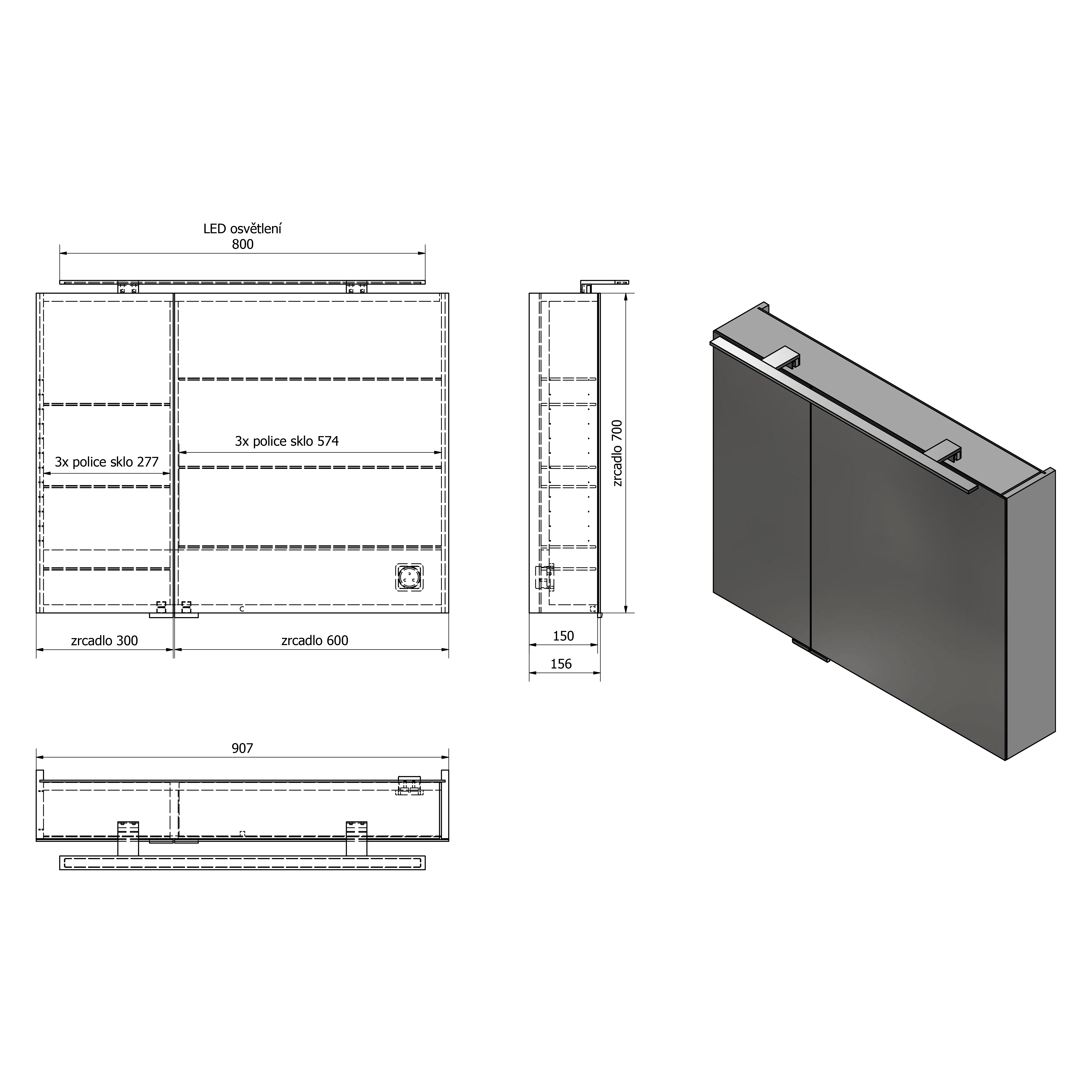 RC090 MIRRÓ tükrösszekrény LED világítással, 90x70x15cm