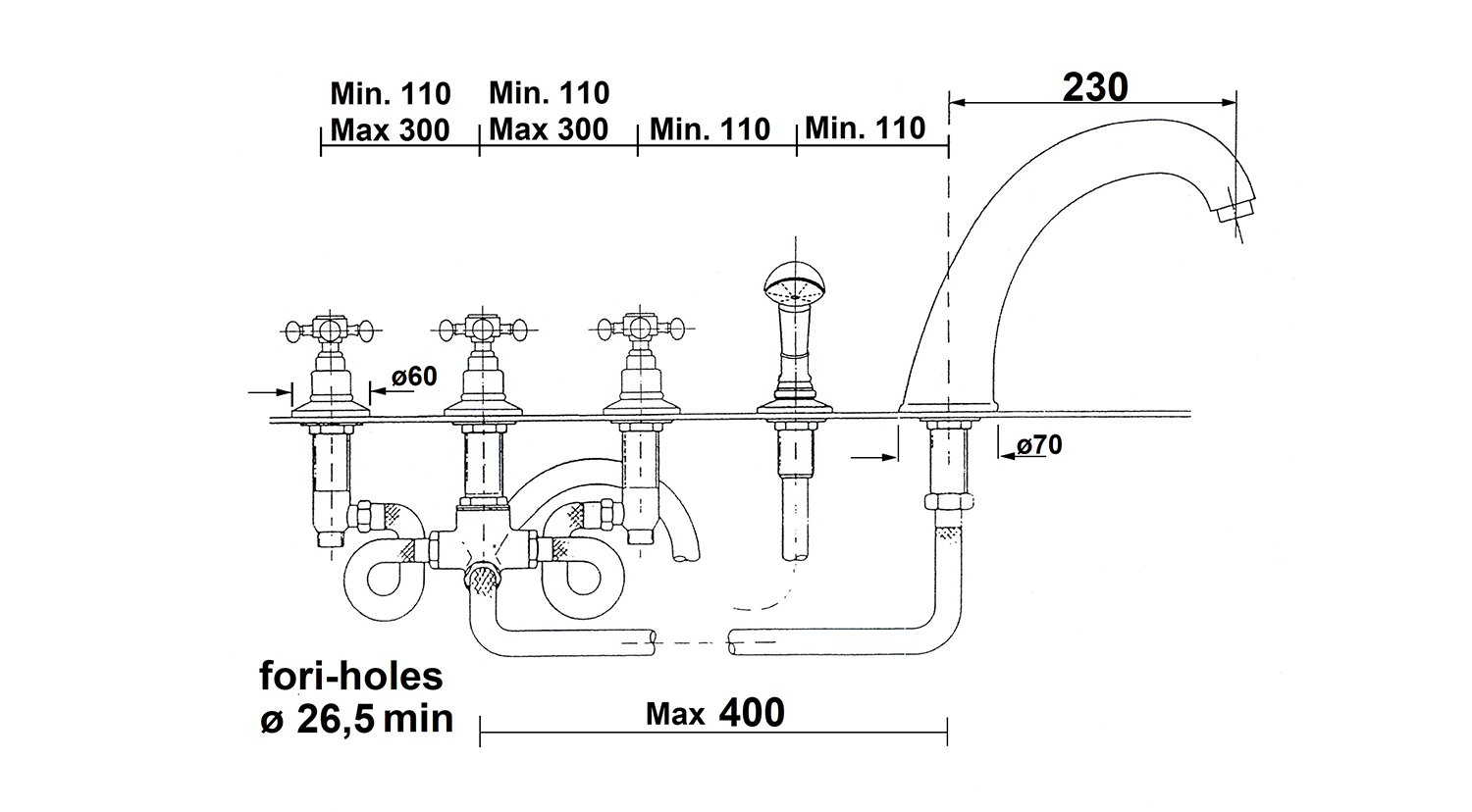 9856 REITANO ANTEA Kádperemre szerelhető csapteleptartó láb (pár), 3/4", bronz