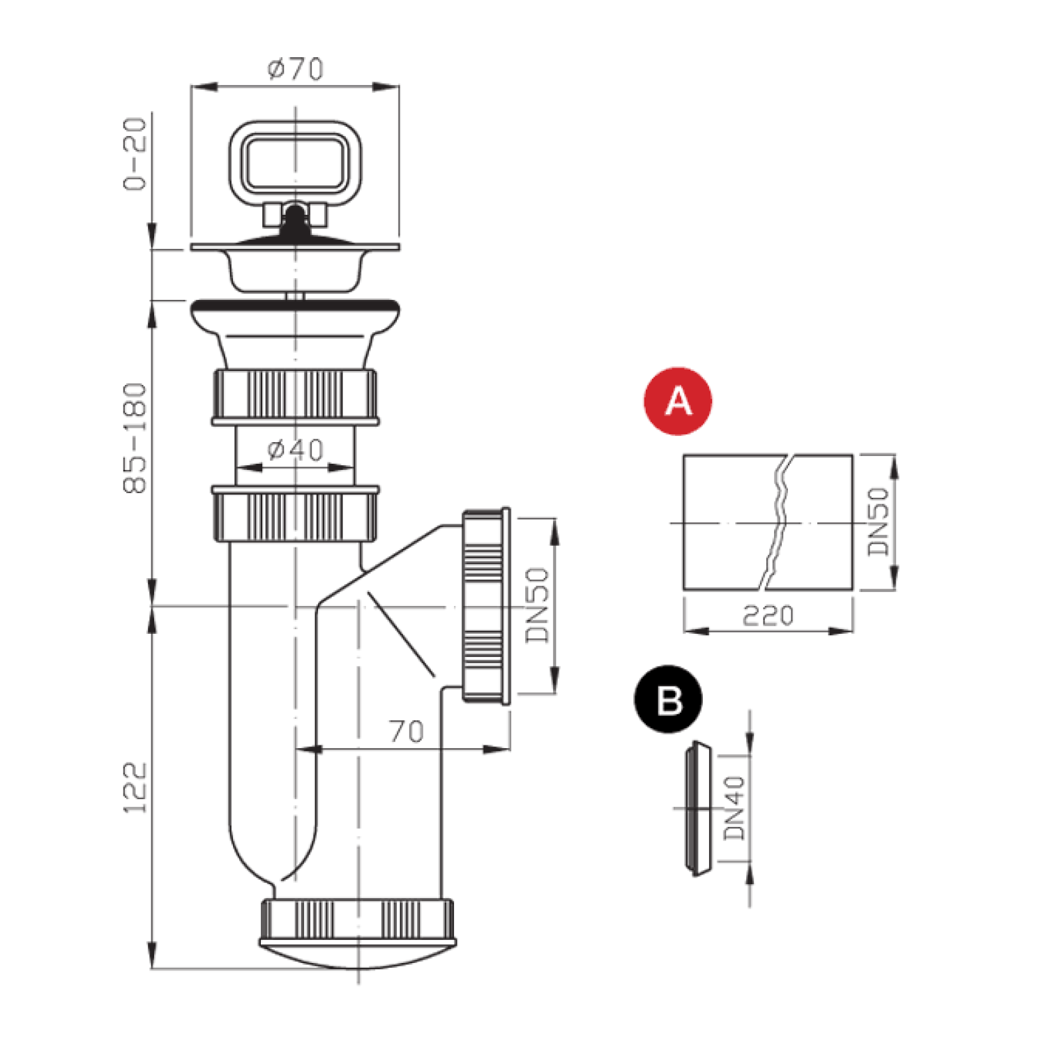 BRUCKNER mosogatószifon, gumi dugóval, 50mm (155.117.0)