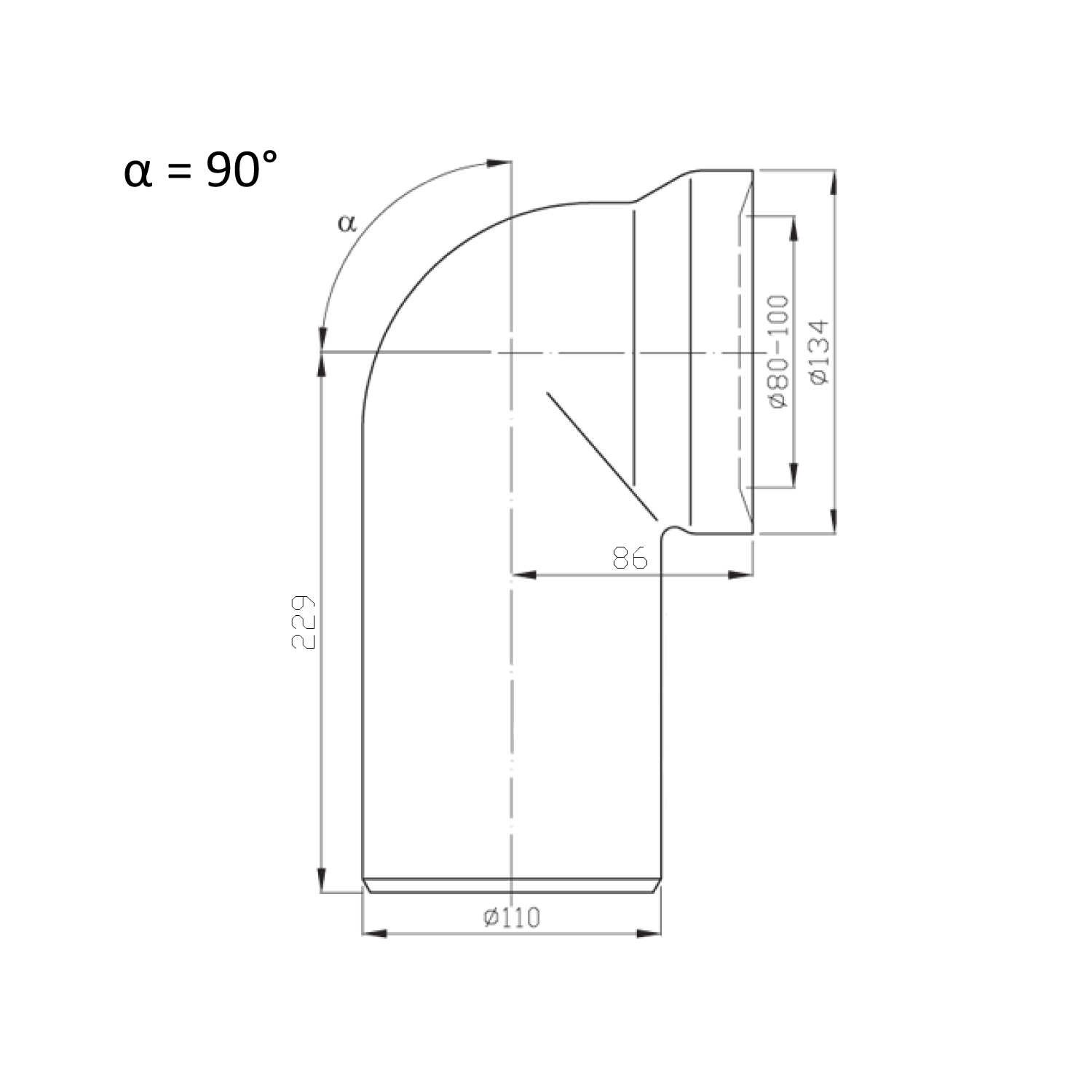 159.316.0 BRUCKNER WC lefolyó, 110mm, 90 fokos