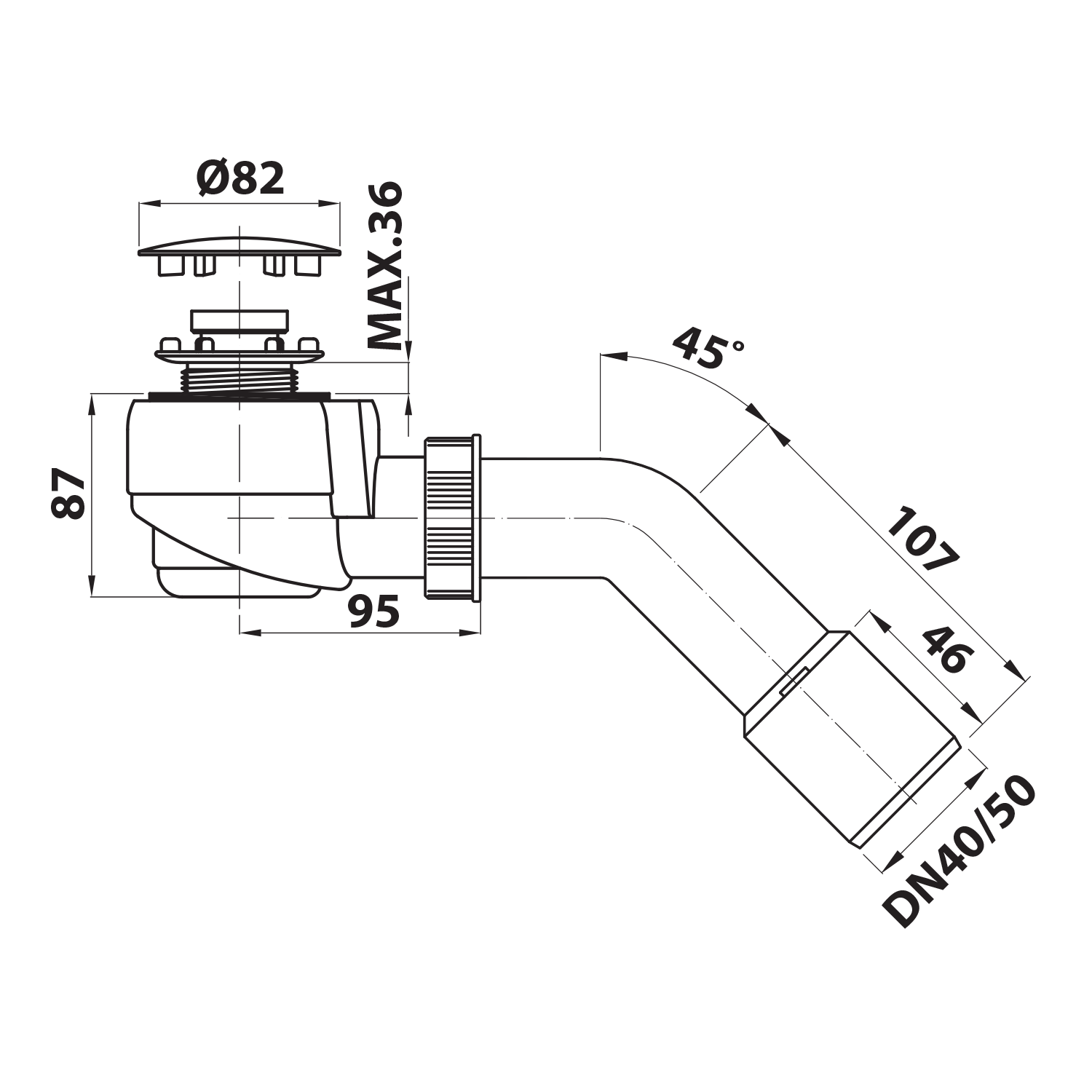 BRUCKNER zuhanytálca szifon, 50mm, DN40, rozsdamentes acél (162.540.3)