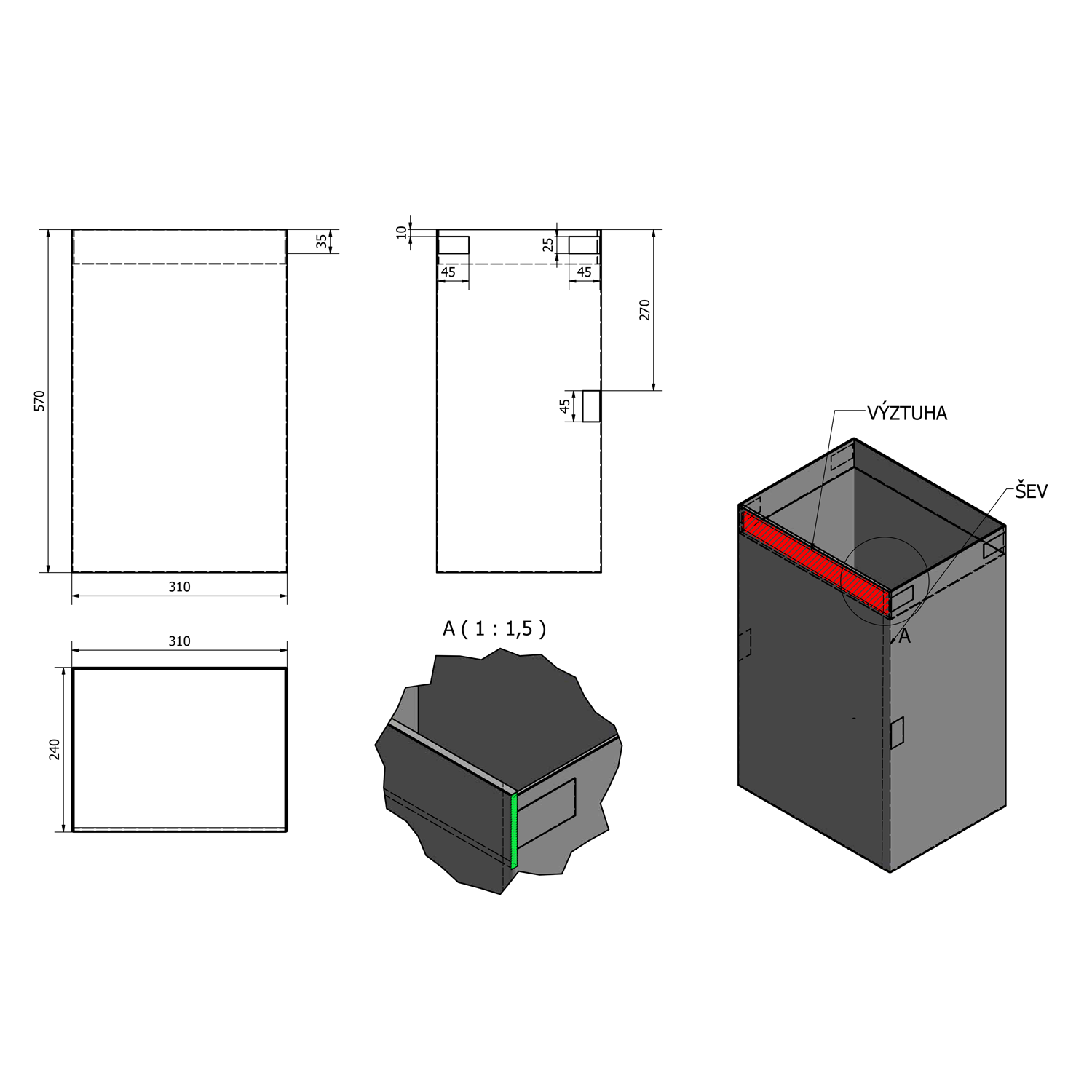 Textil szennyeskosár, tépőzáras rögzítés, 310x570x230mm, szürke (UPE600)