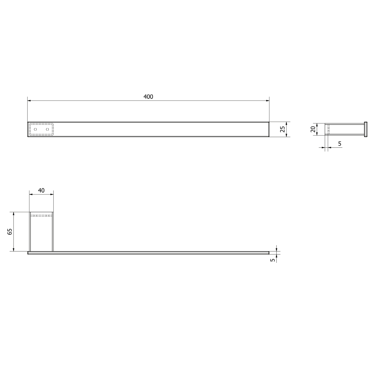 BELLA Törölközőtartó a szekrény oldalára, 400x25x70mm, matt fekete (FA311B)