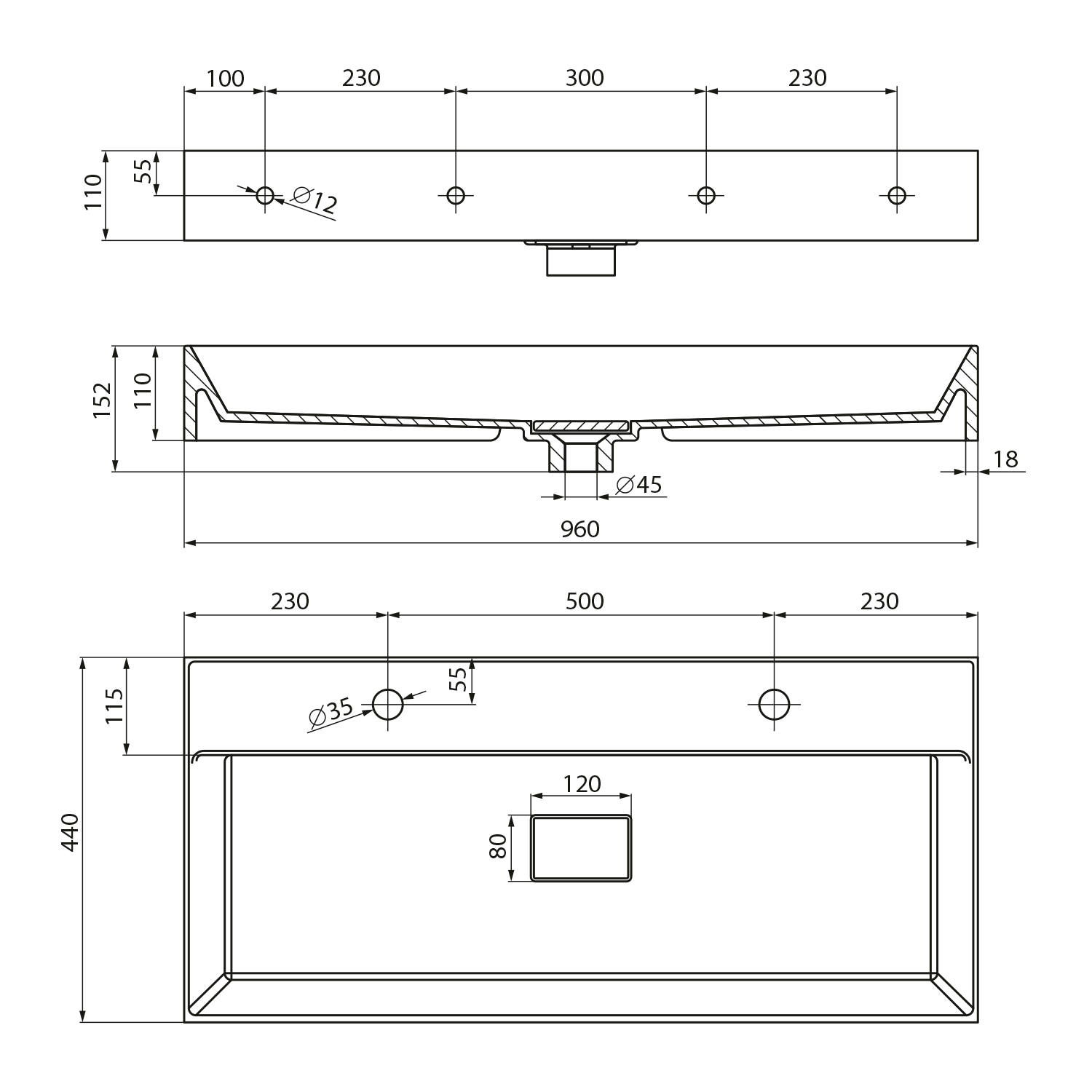 OR101 ORINOKO öntöttmárvány mosdó, 100x10x42cm