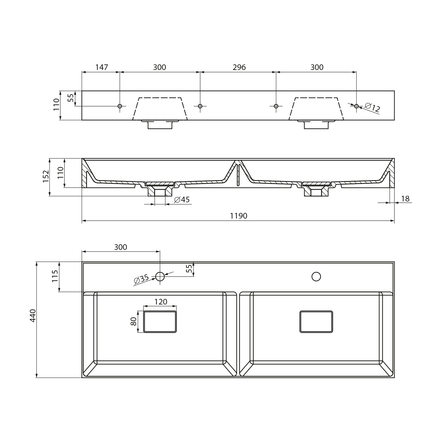 GODIVA öntöttmárvány mosdó, 119x44cm (GU119)