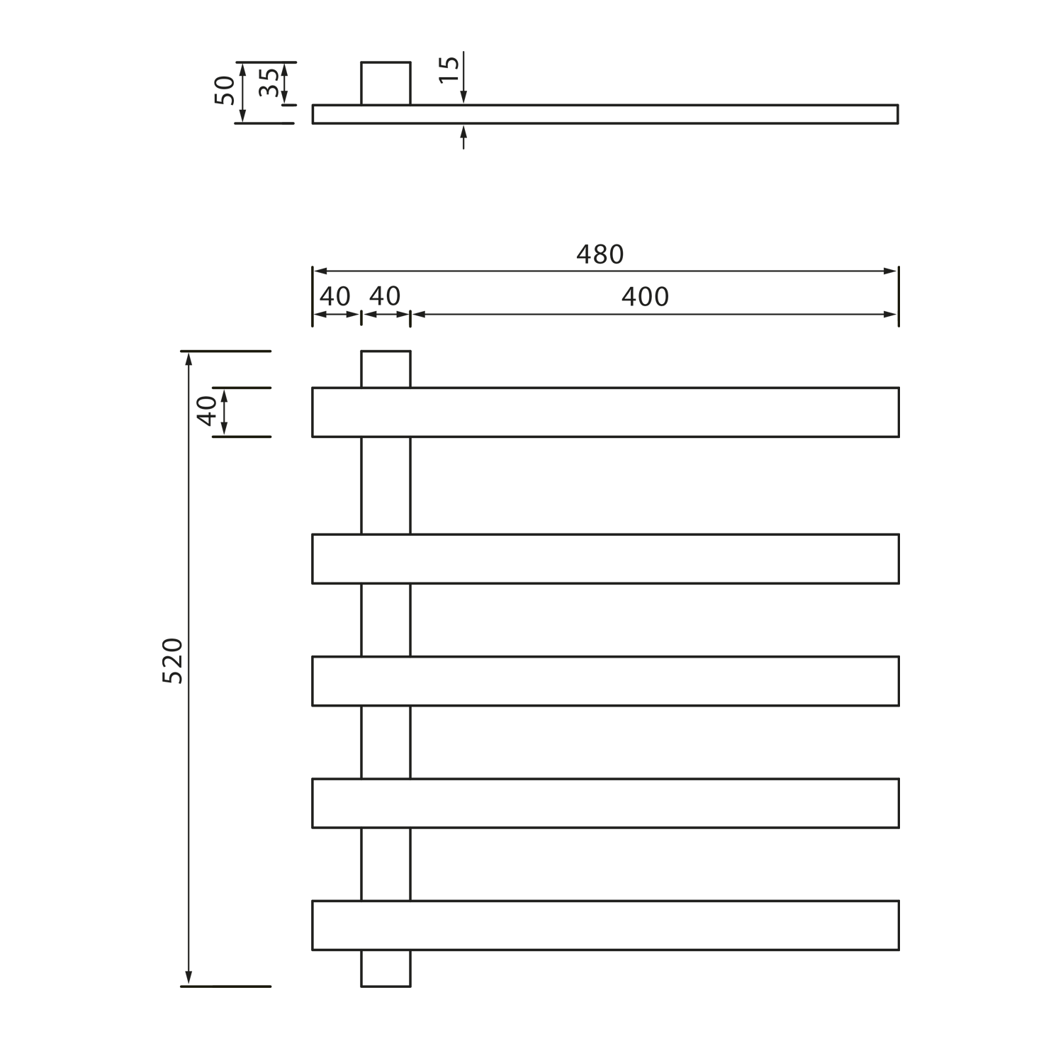 EB520 ELCOR elektromos törölközőszárító radiátor, 480x520x50mm, 63W, matt fehér