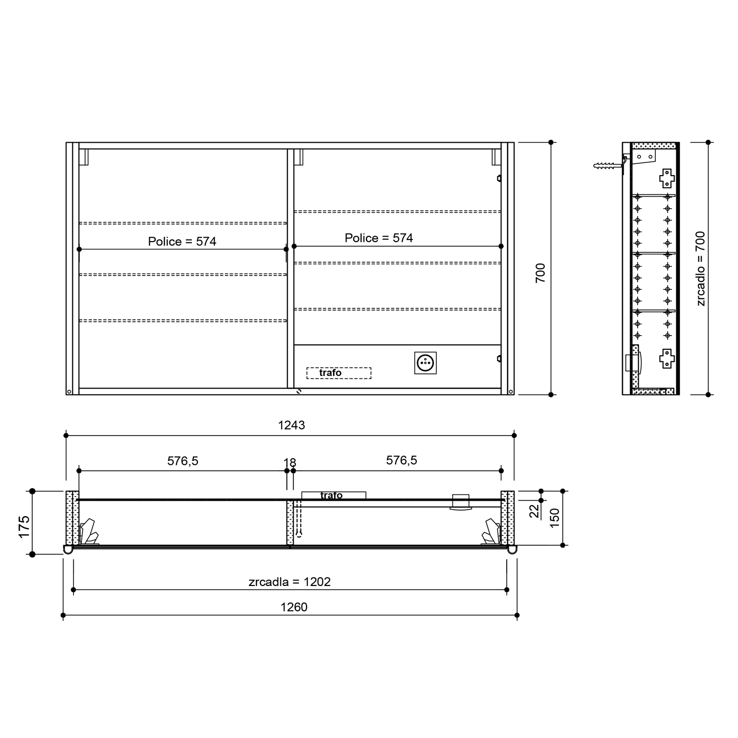 AL170 ALIX tükrösszekrény LED világítással 120x74,5x15cm