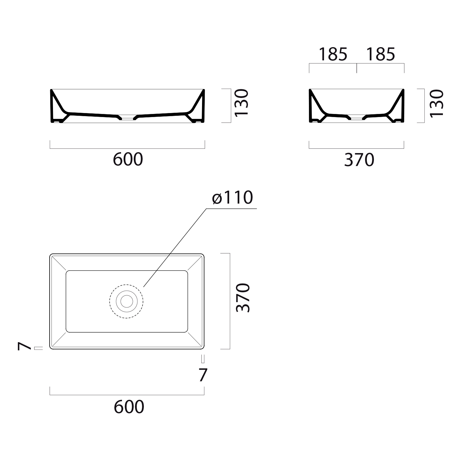 94549011 GSI KUBE X kerámiamosdó, csiszolt alsó szélekkel, 60x37cm, furat nélkül, ExtraGlaze