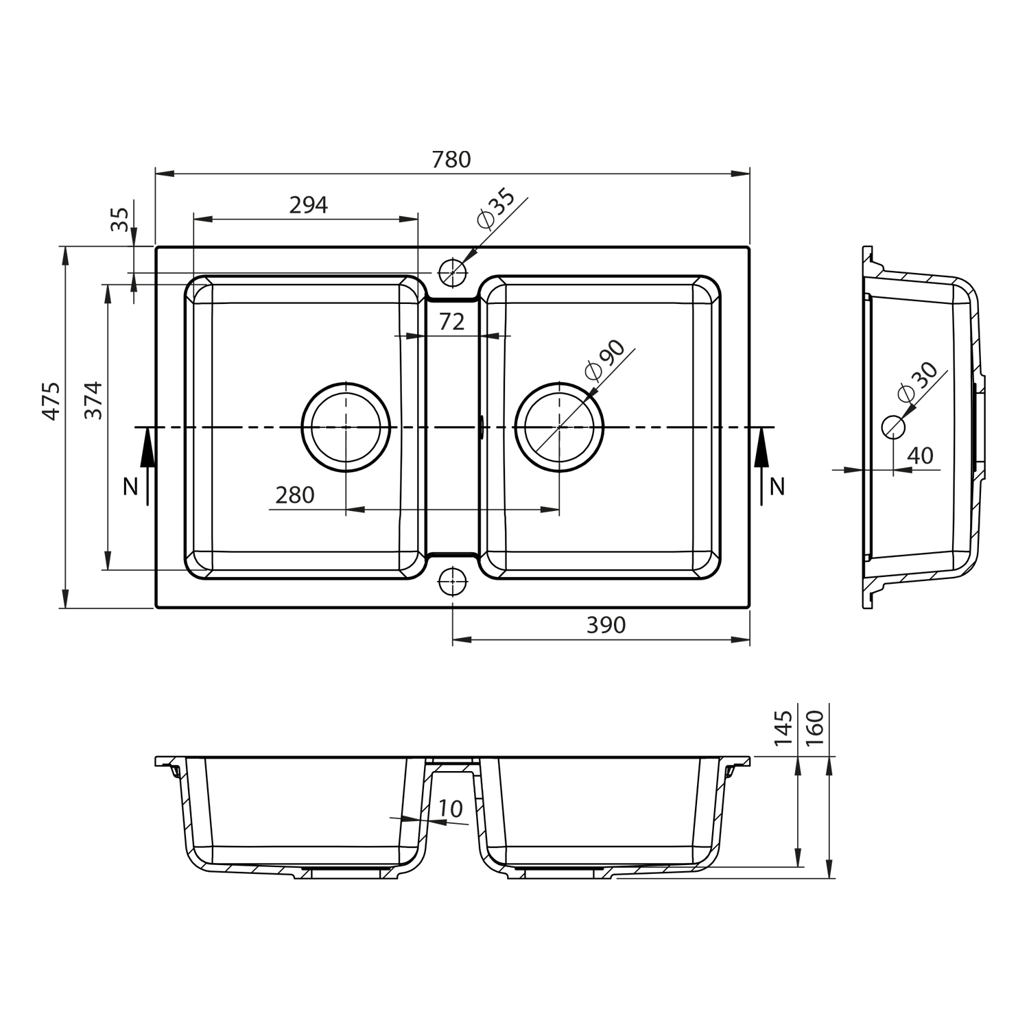 Gránit mosogató, duplamedencés, 78x47,5cm, fehér (GR2221)
