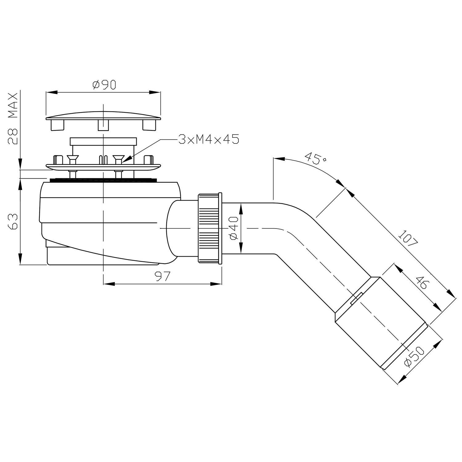 BRUCKNER zuhanytálca szifon, 60mm, DN40/50, INOX (162.640.3)