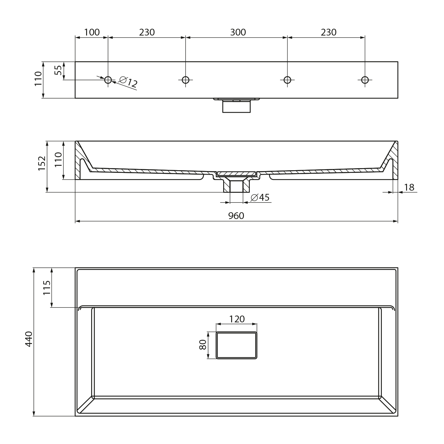 OR100 ORINOKO öntöttmárvány mosdó, 100x10x42cm
