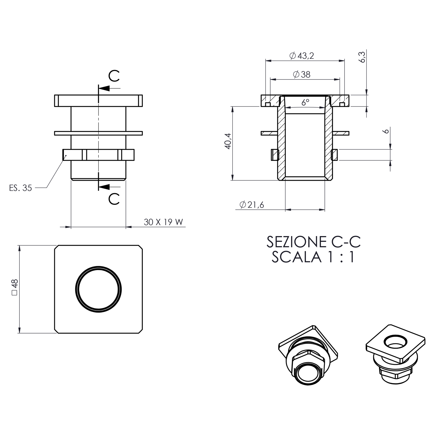 kádperemre szerelhető persely, szögletes, króm (1205-42)