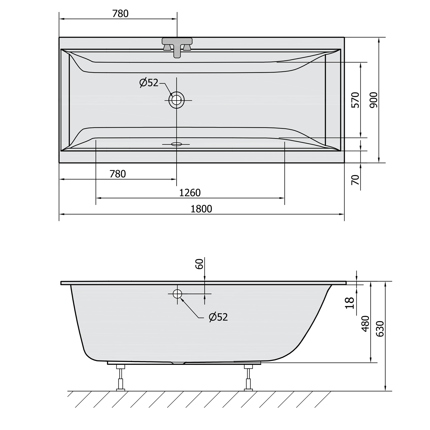 POLYSAN CLEO SLIM kád, 180x90x48cm (13111S)
