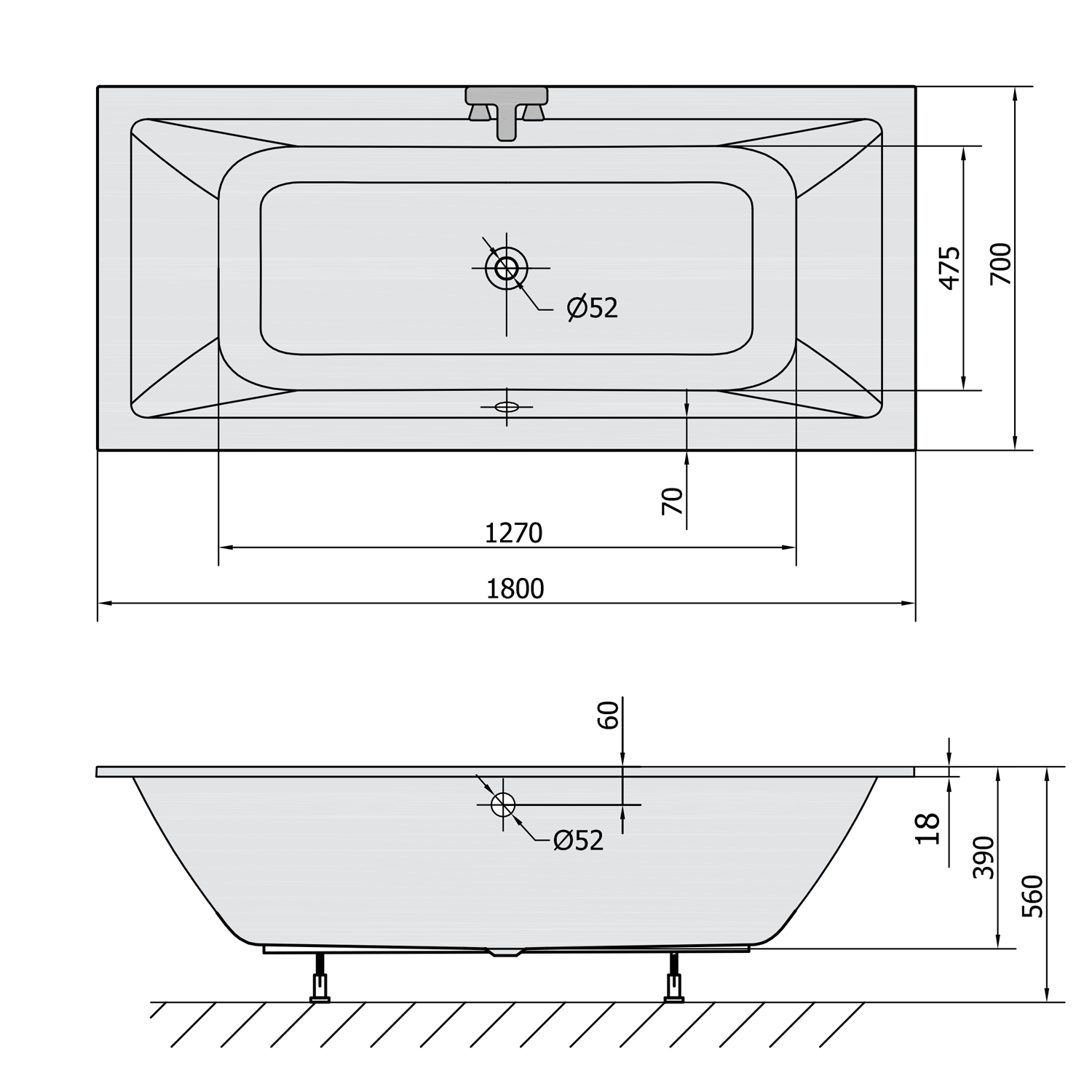 POLYSAN KRYSTA akril SLIM kád, 180x70x39cm (72906S)