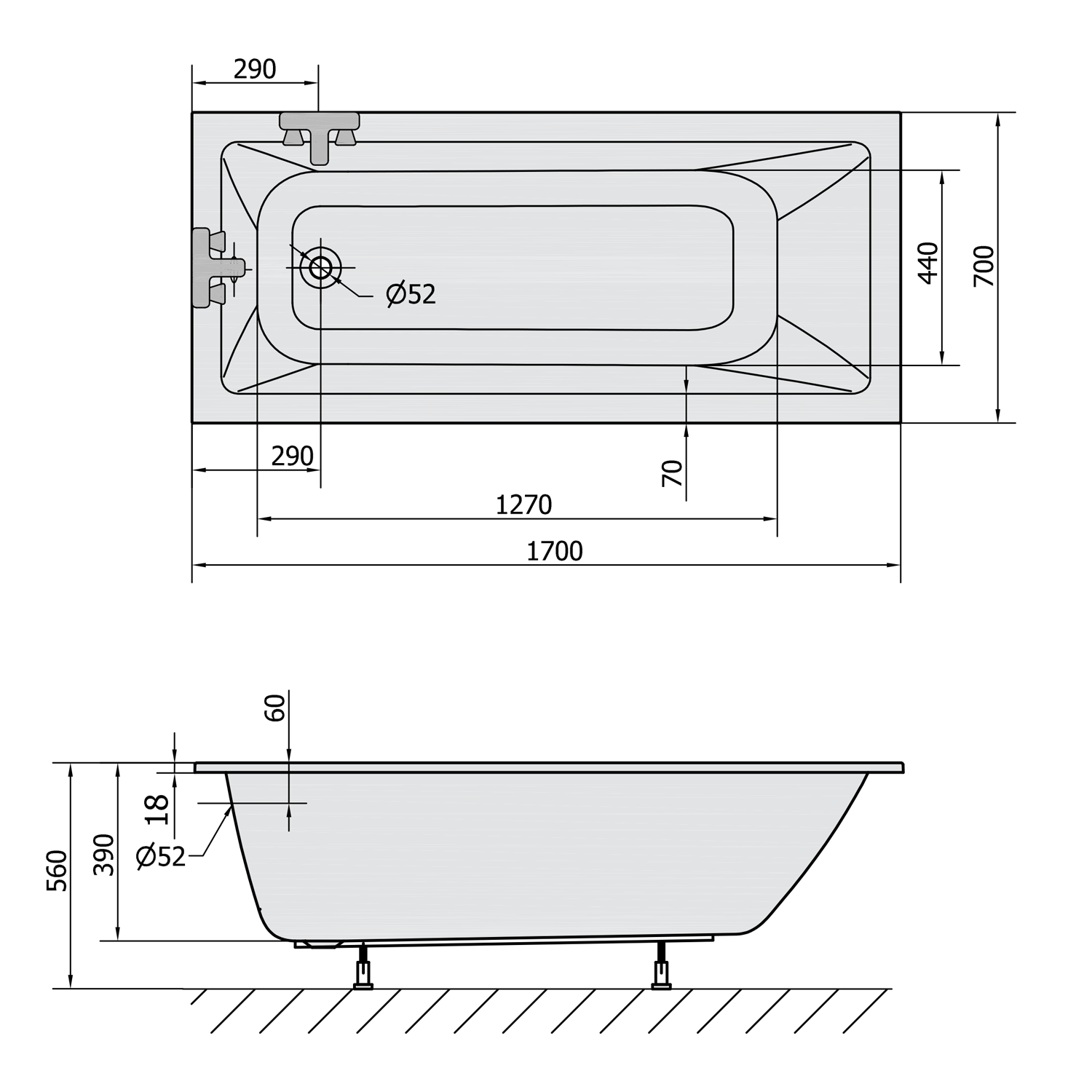 POLYSAN NOEMI akril SLIM kád, 170x70x42cm (71708S)