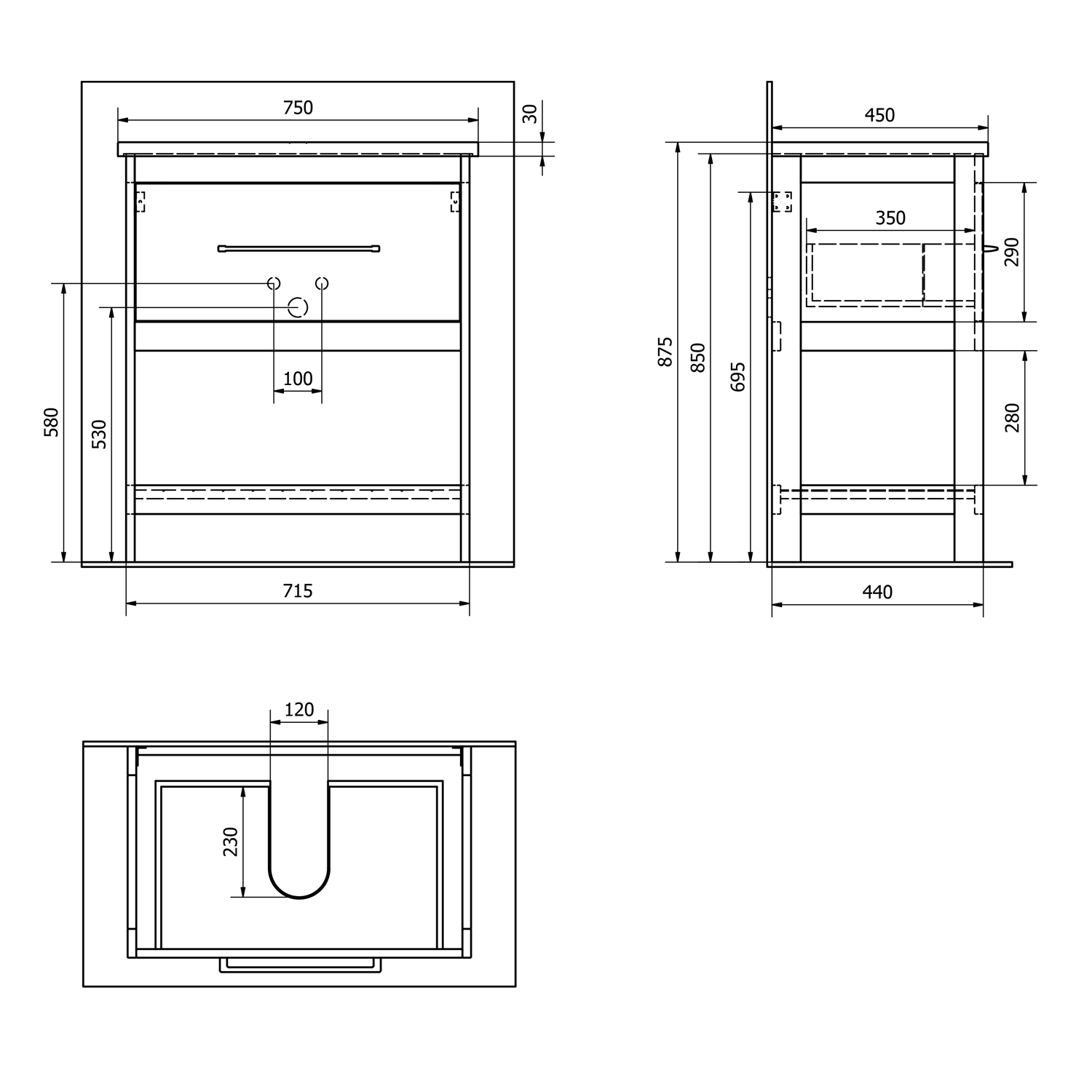 9075 AQUALINE ZUNO kerámiamosdó, 75x45cm