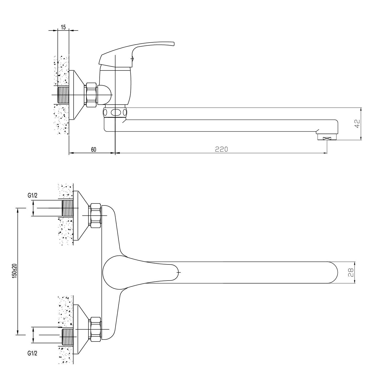 SzerelésFali 150 mm