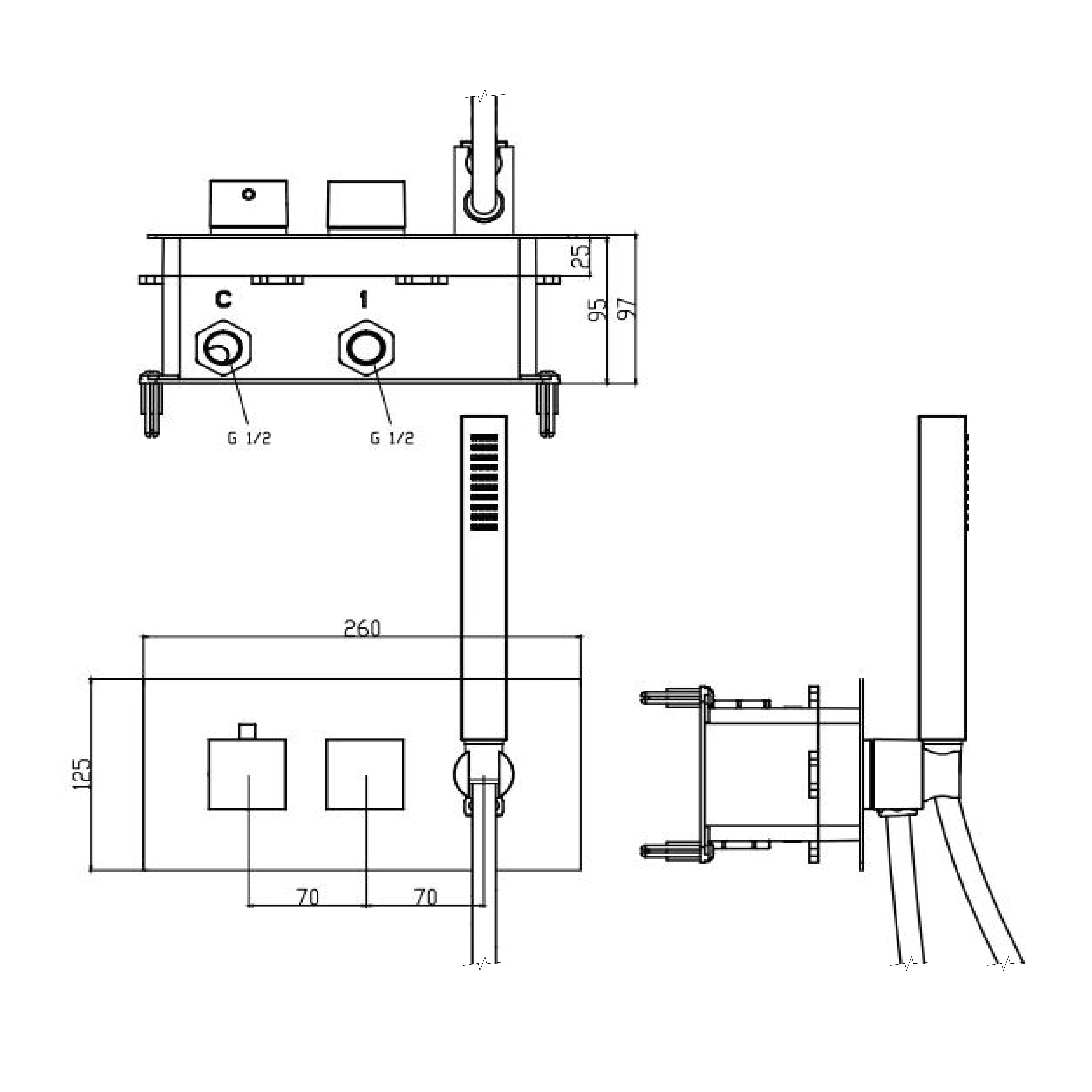 1102-45 SPECTRE falsík alatti termosztatikus zuhanycsaptelep kezizuhannyal, króm