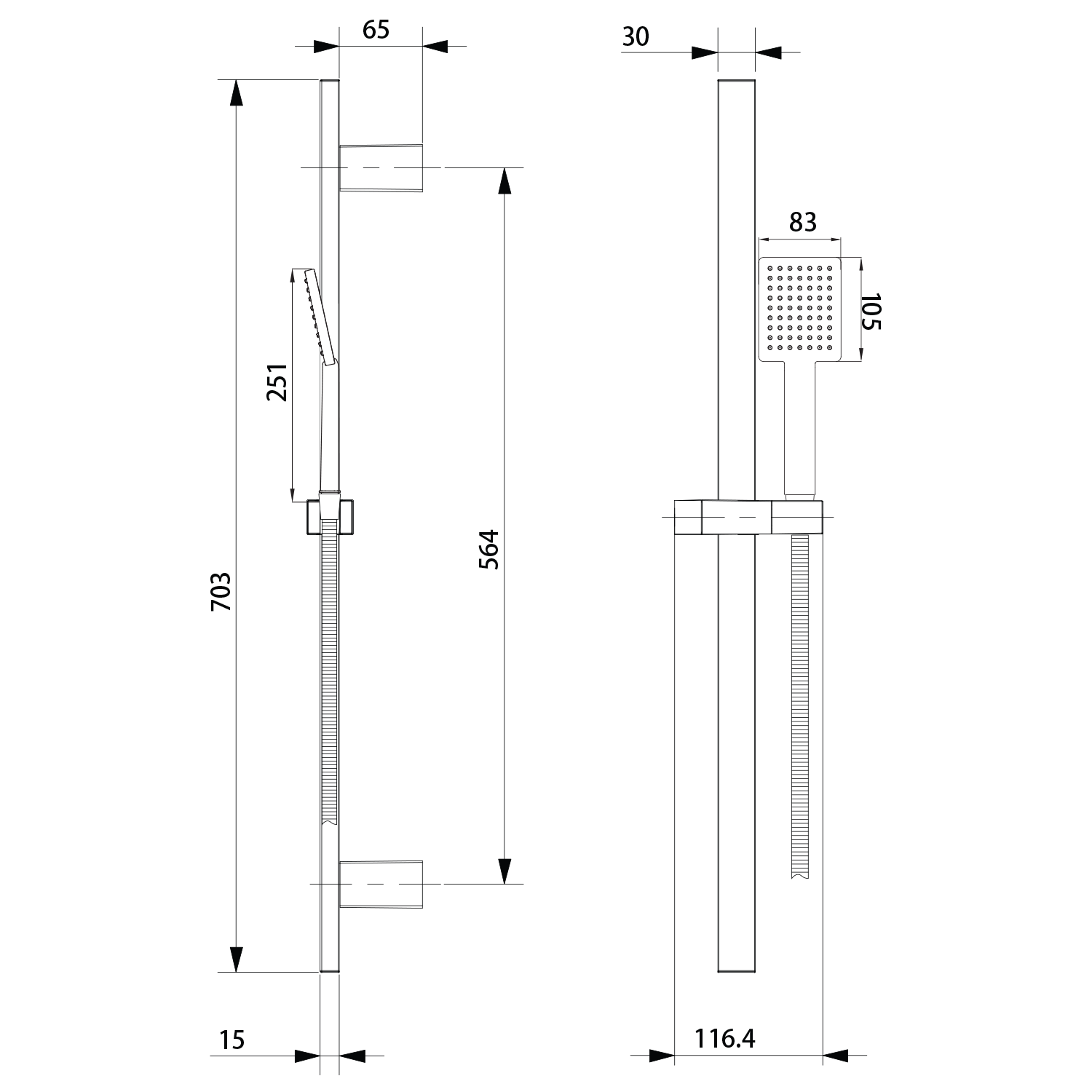szögeletes zuhanyrúd, 700mm, matt fekete (SC615)