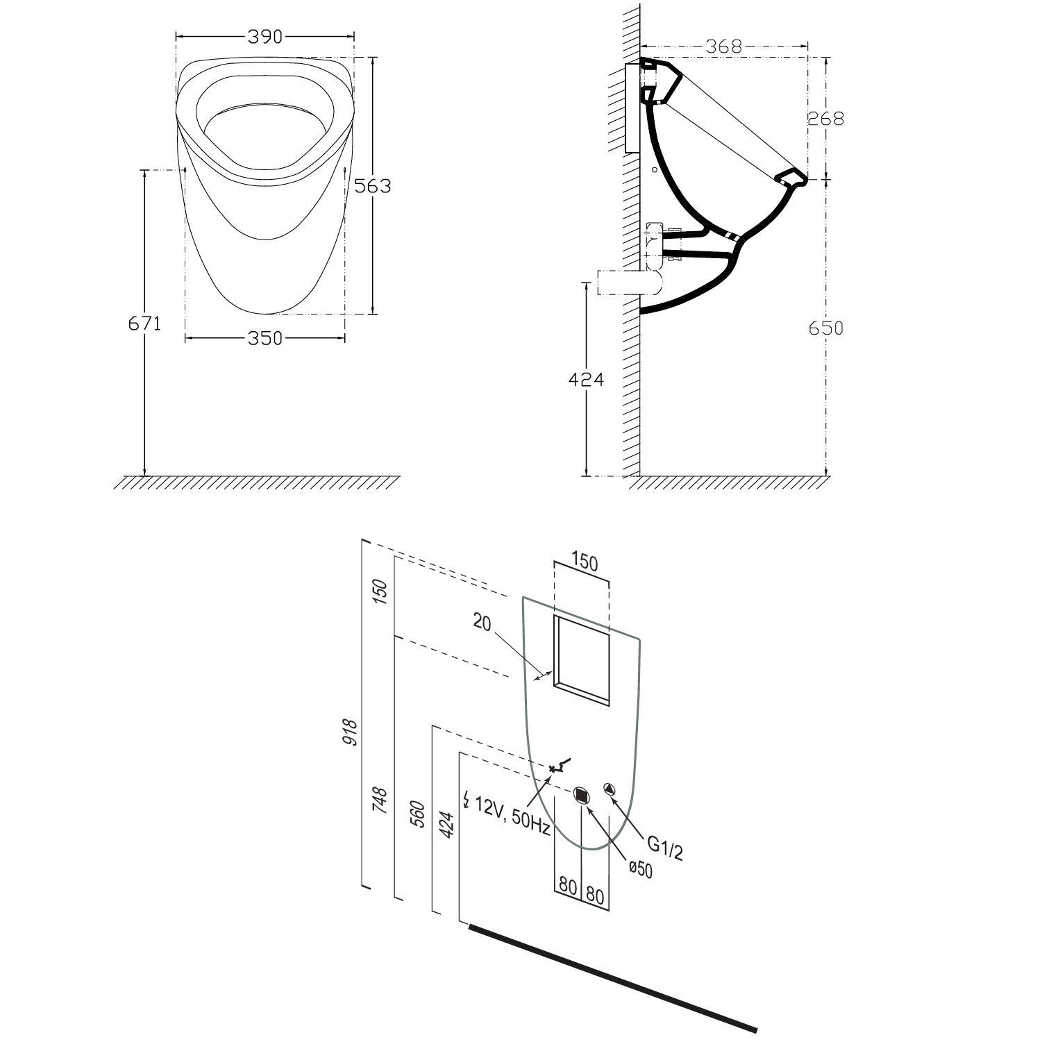 AQUALINE Piszoár, hátsó vízbekötéssel, szifonnal, szenzorral 58x39cm (10SZ92001-SENSOR)