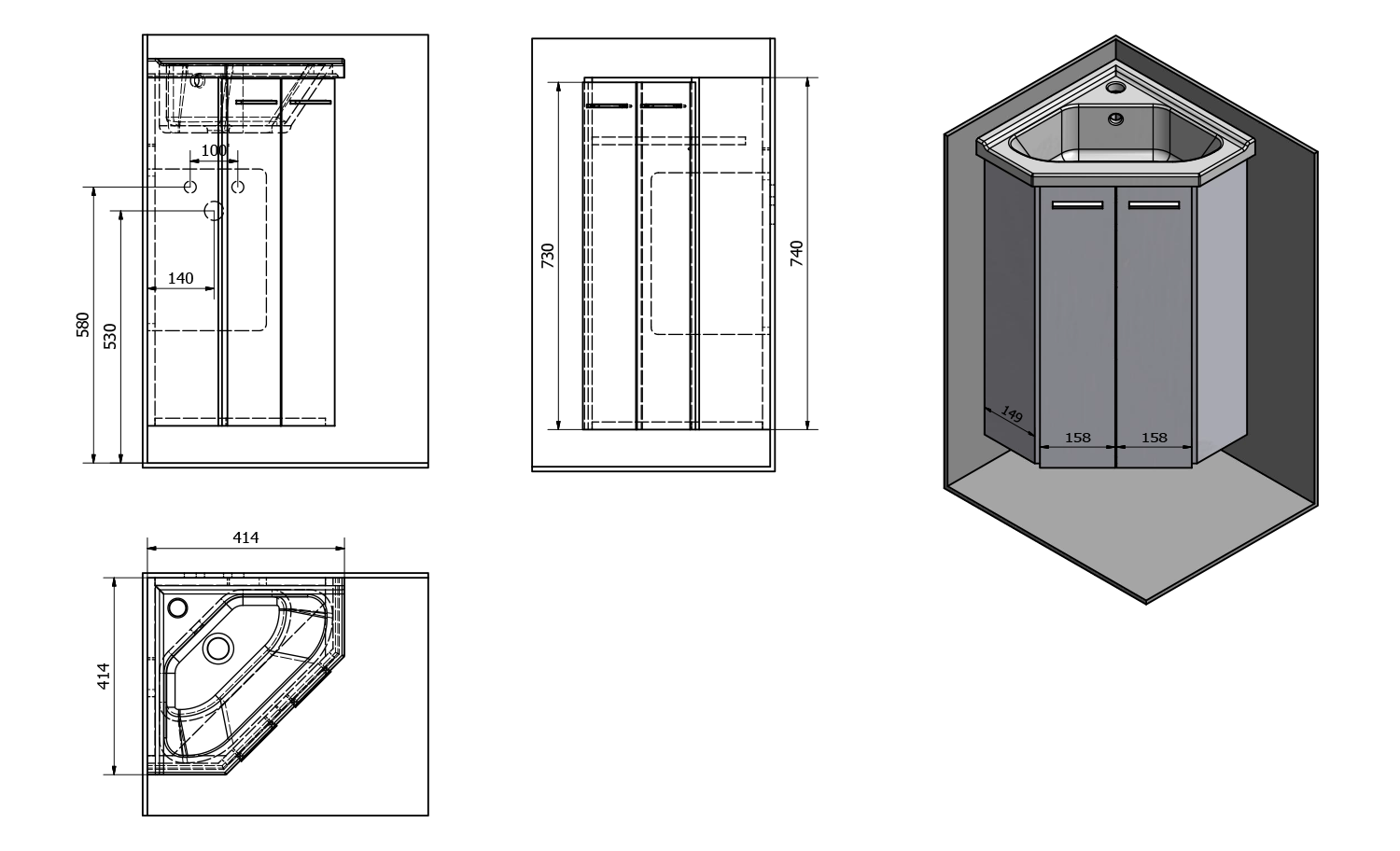 50345 AQUALINE sarok mosdótartószekrény, 39x74x39cm, fehér