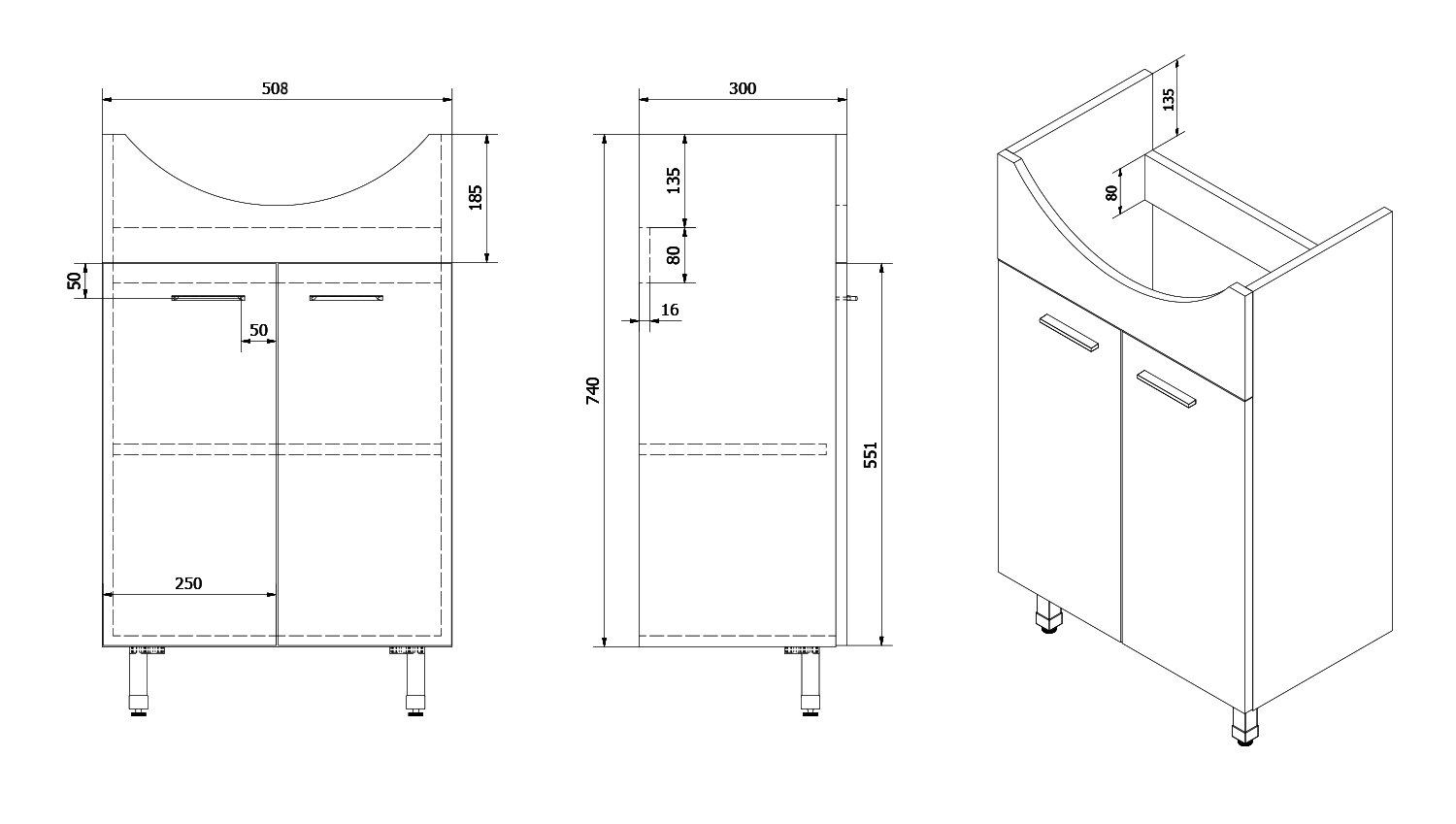 57030 AQUALINE mosdótartó szekrény, 50x30x50cm, fehér
