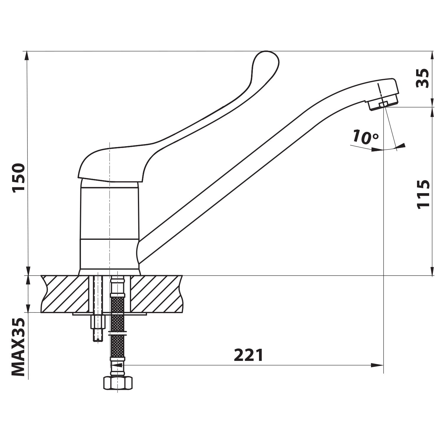 52044 AQUALINE mosogató-csaptelep, 220mm kifolyócsővel és orvosi karral