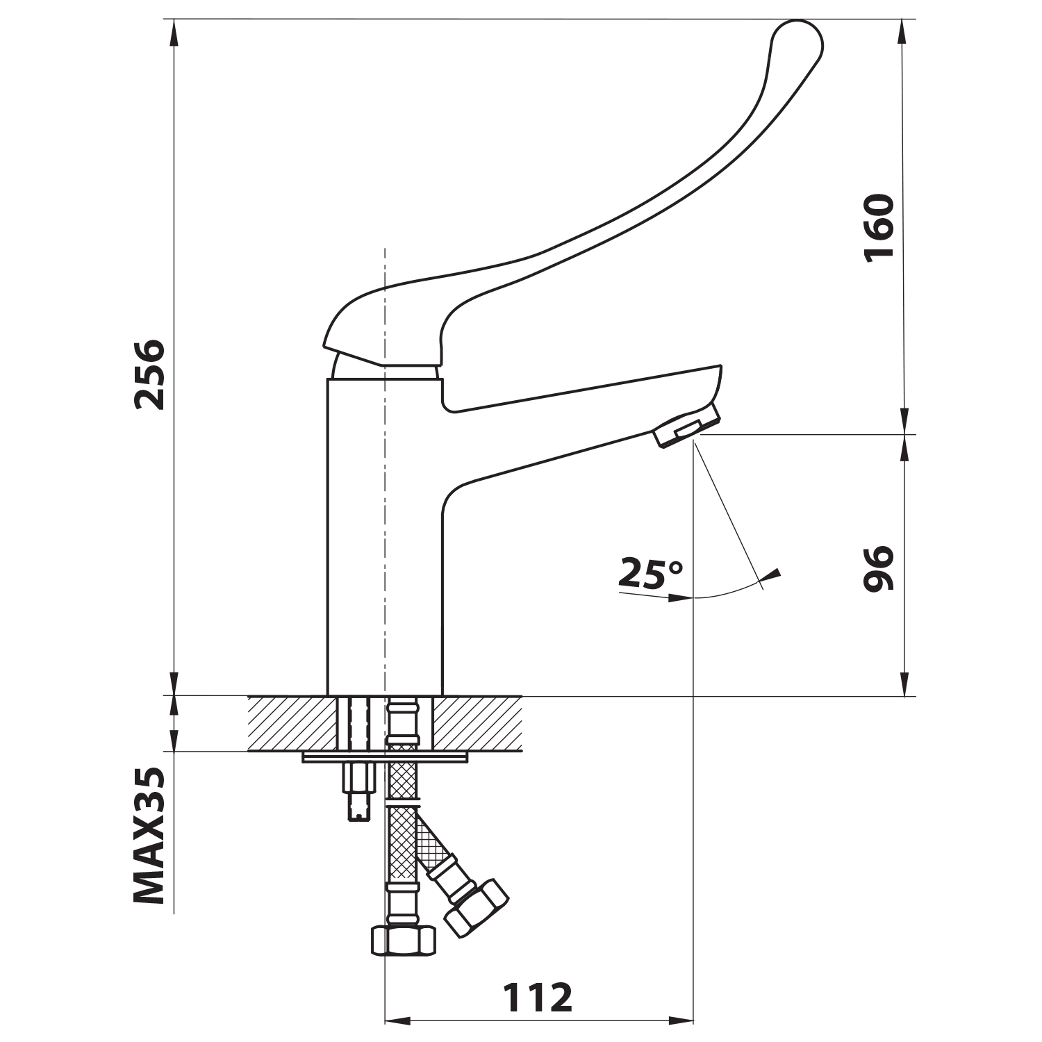 52234 AQUALINE mosogató-csaptelep, 177mm kifolyócsővel és orvosi karral