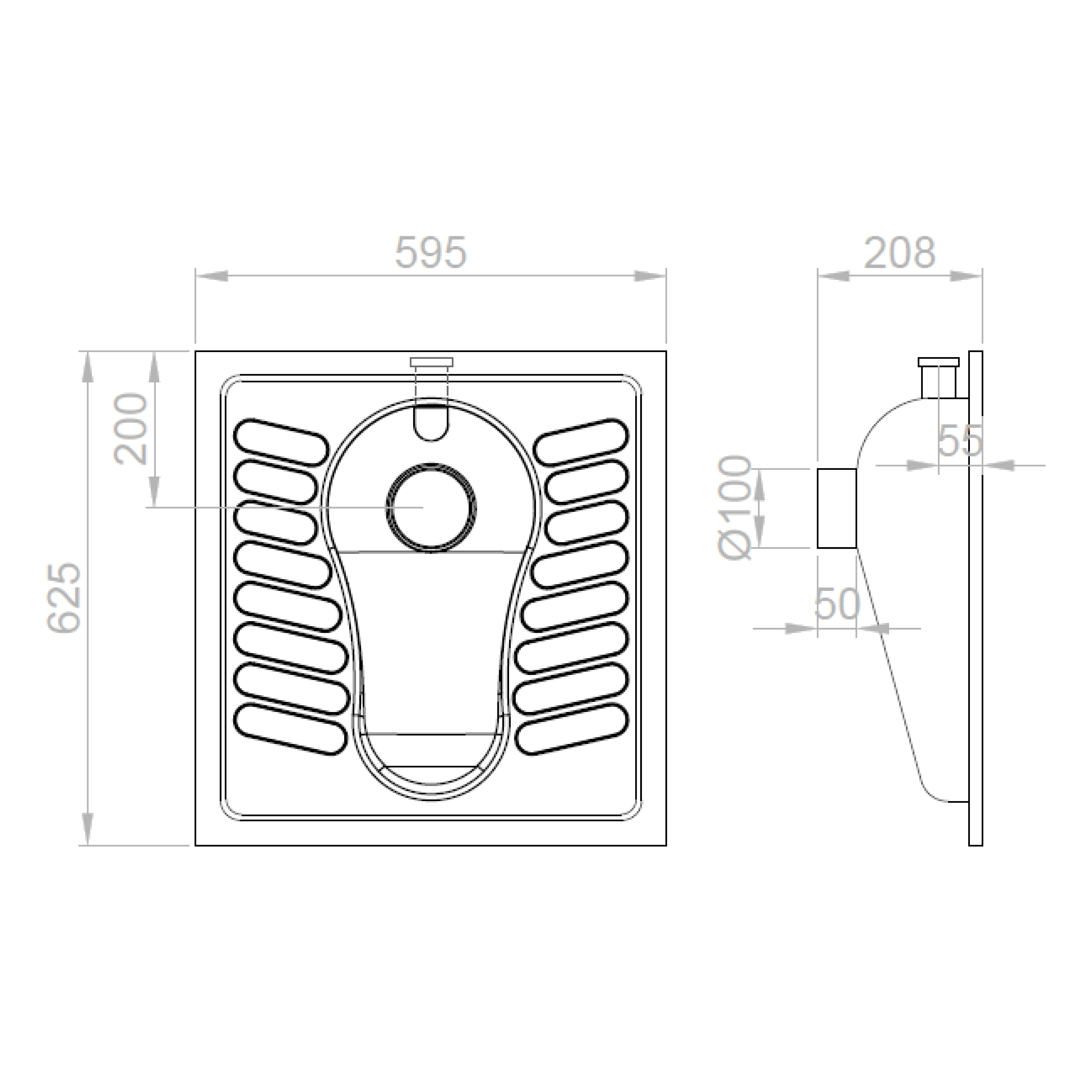 NOFER török WC, 595x208x625 mm, rozsdamentes acél (13023.B)