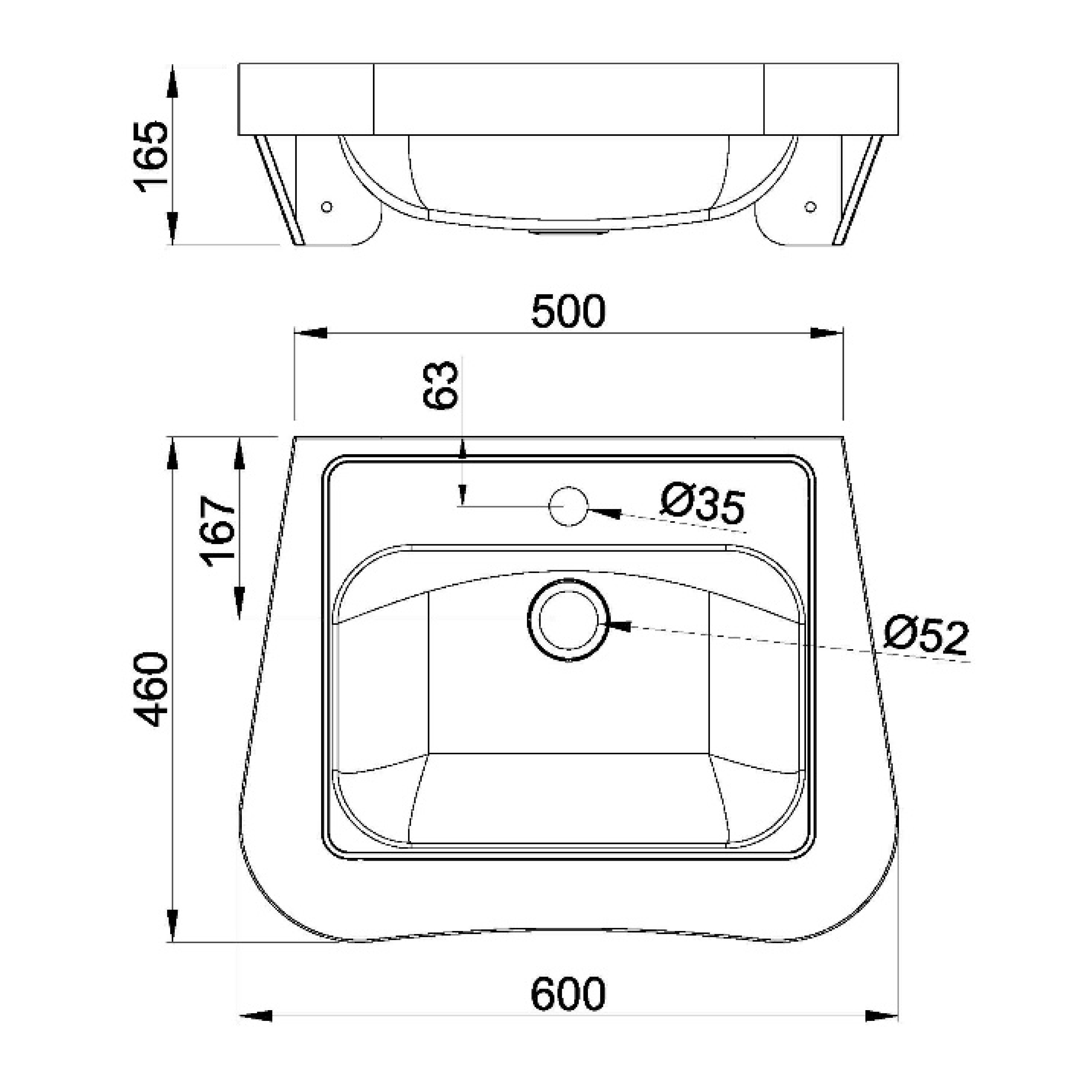 NOFER fali mosdó mozgáskorlátozottaknak, 600x150x460mm, matt rozsdamentes acél (13024.2.S)