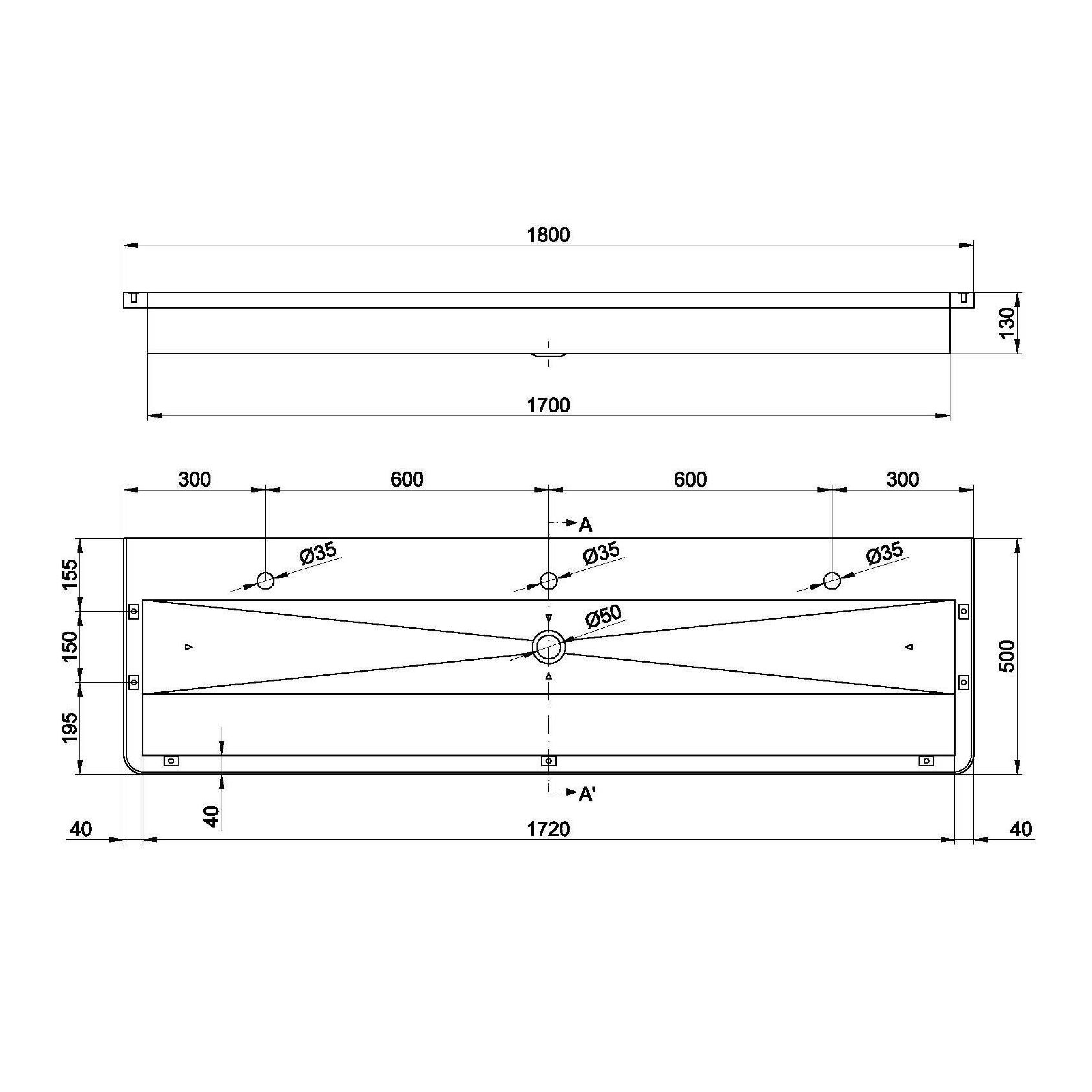 NOFER PUBLIC mosogató, 1800x130x500mm, matt rozsdamentes acél (13050.18.SP.S)