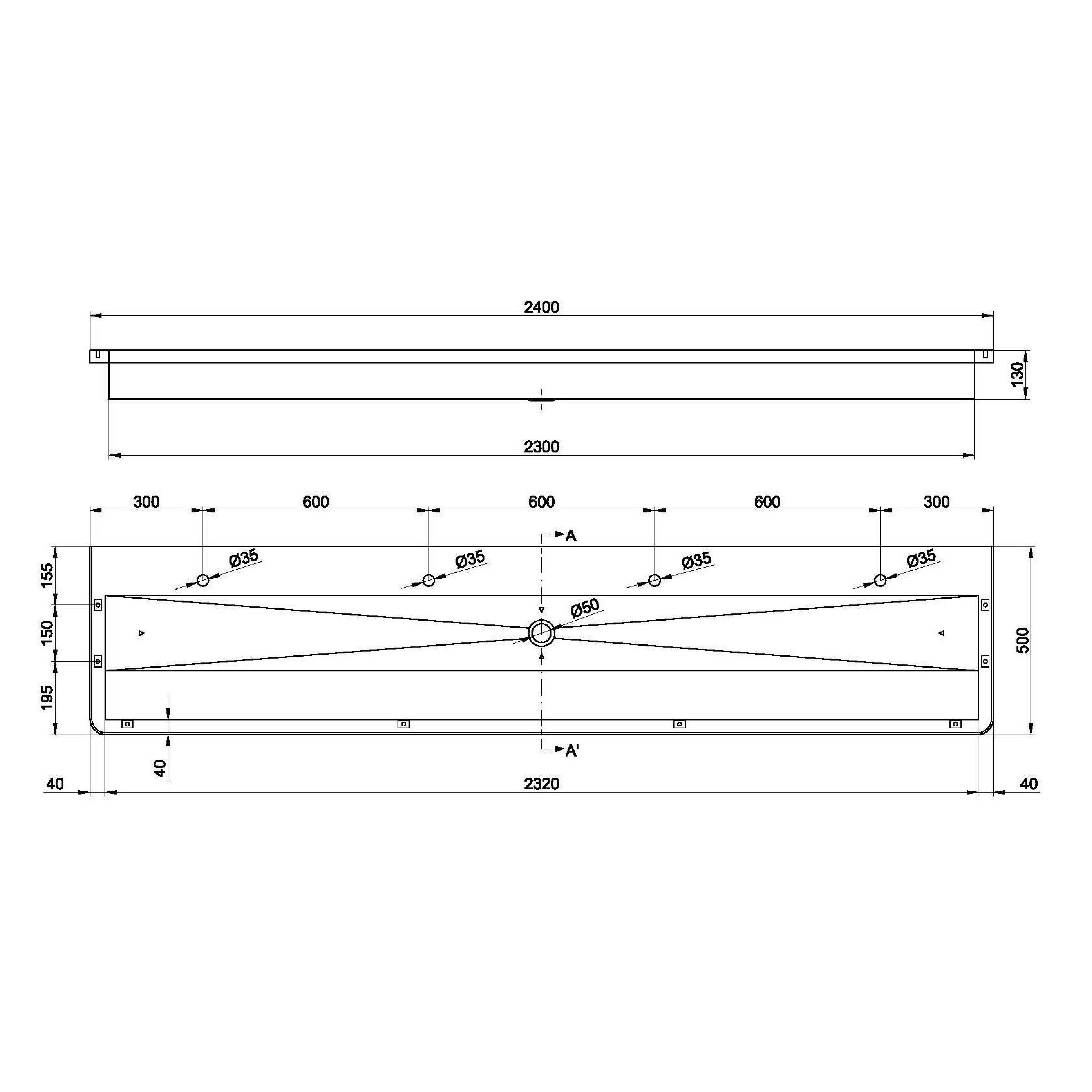 NOFER PUBLIC mosogató, 2400x130x500 mm, matt rozsdamentes acél (13050.24.SP.S)